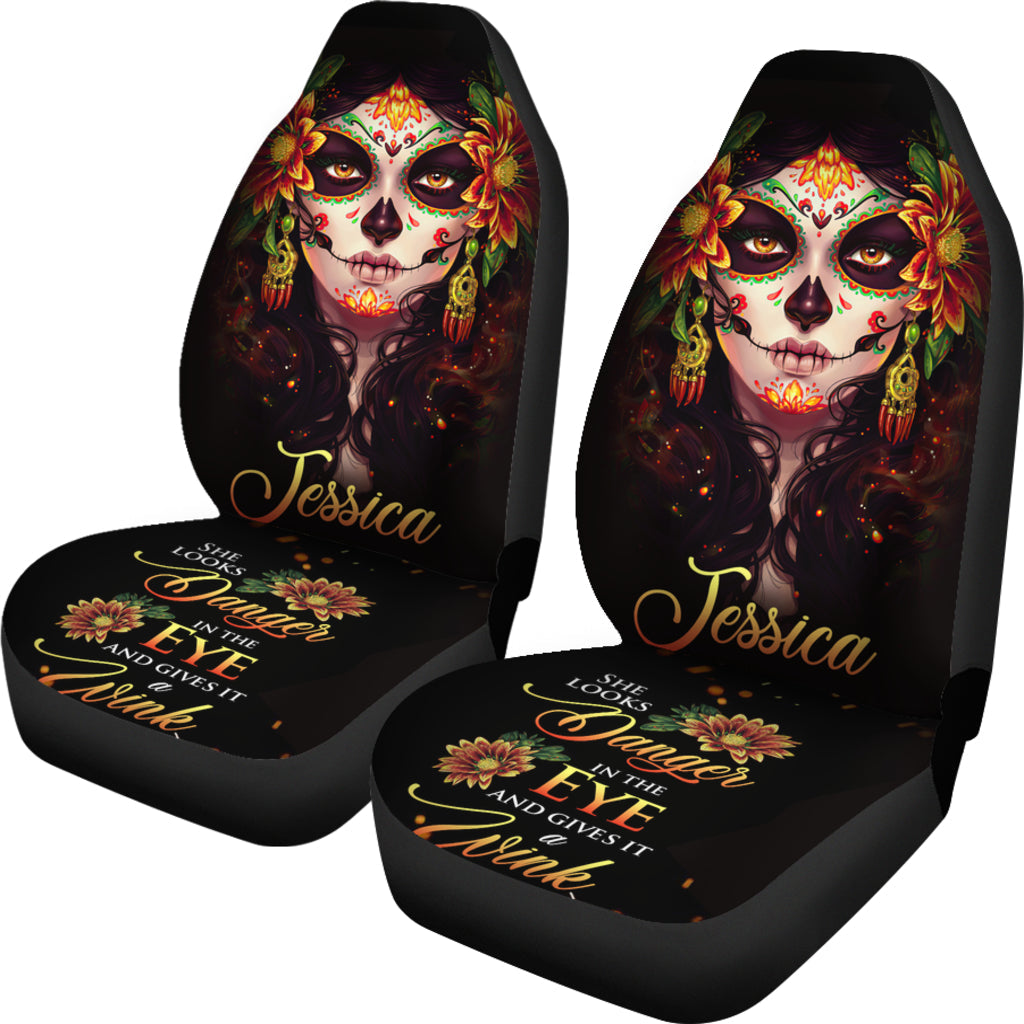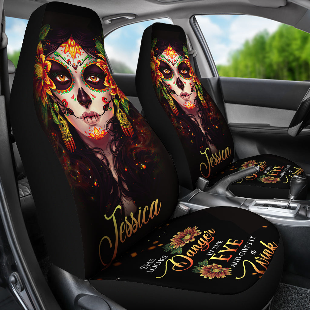 Best Personalized Skull Girl Wink Premium Custom Car Seat Covers Decor Protector