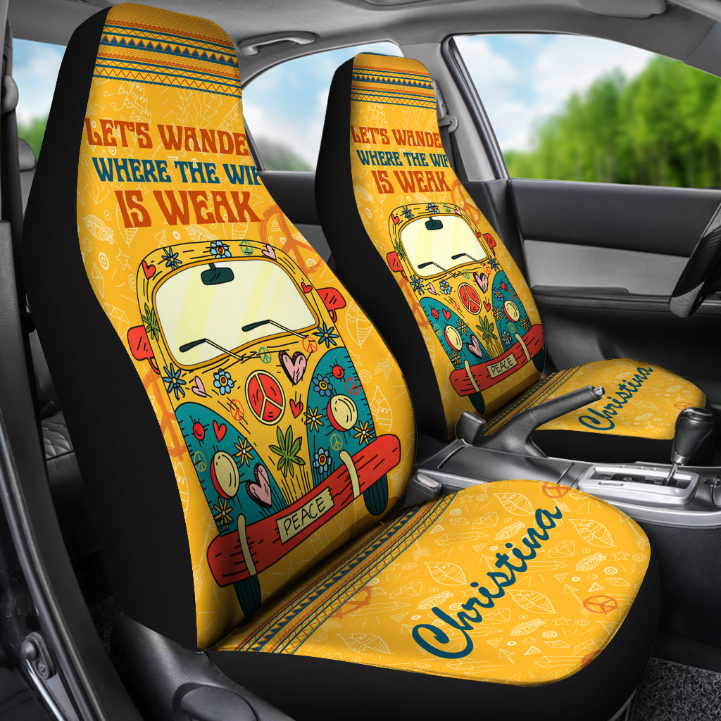 Best Personalized Yellow Hippie Van Trip Premium Custom Car Seat Covers Decor Protector
