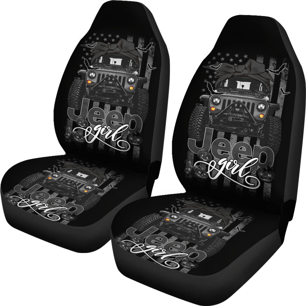 Halloween American Flag Black Jeep Girl Premium Custom Car Seat Covers Decor Protectors