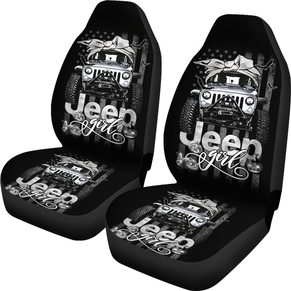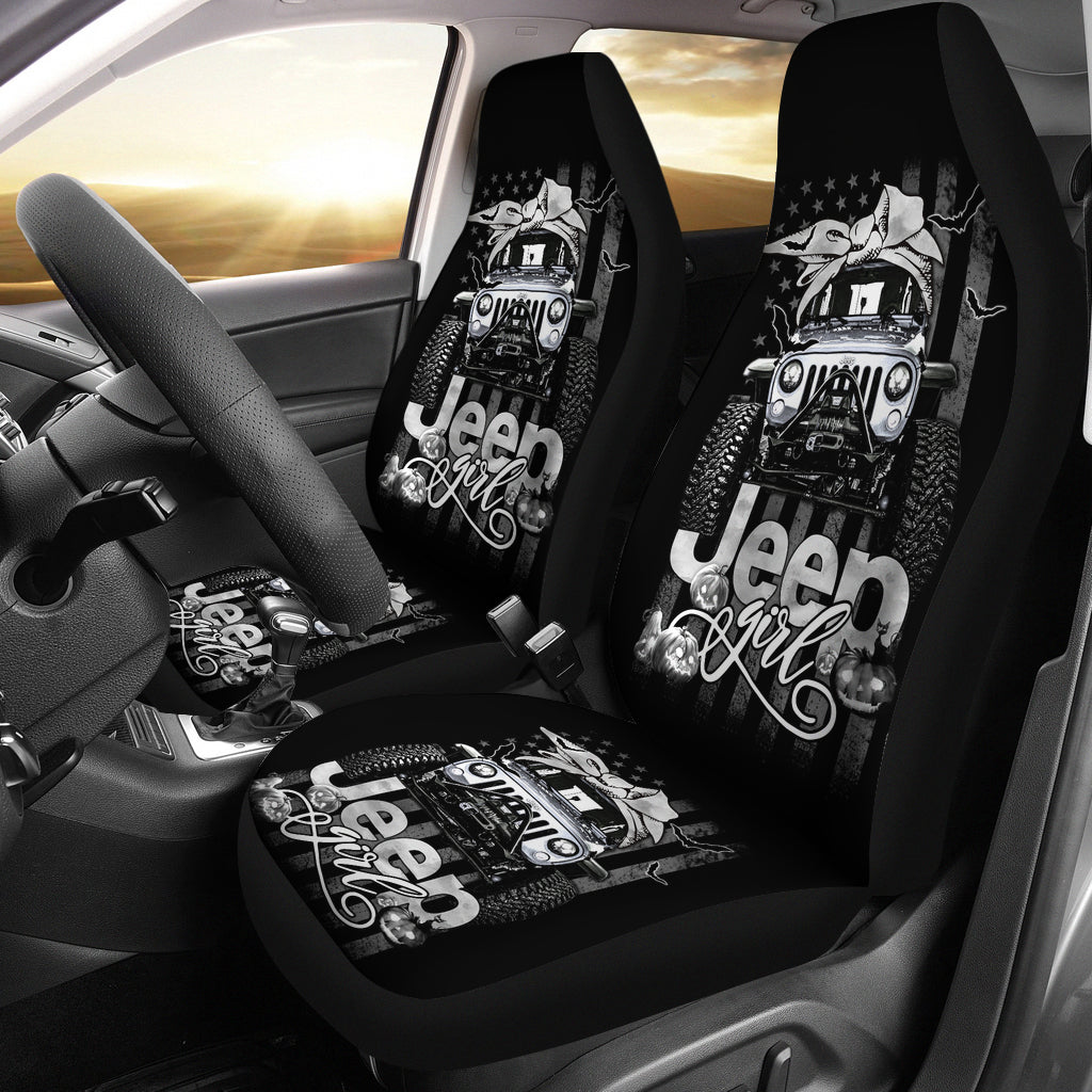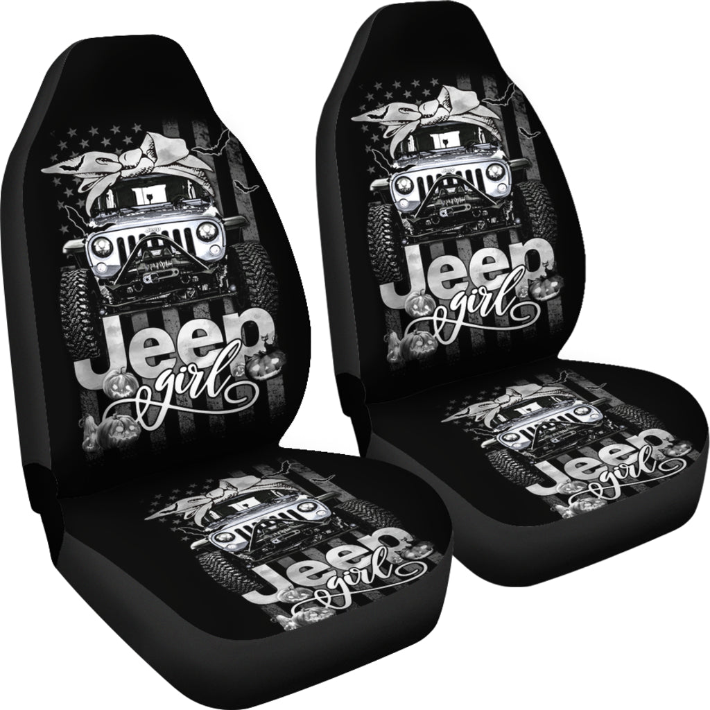 Halloween American Flag White Jeep Girl Premium Custom Car Seat Covers Decor Protectors
