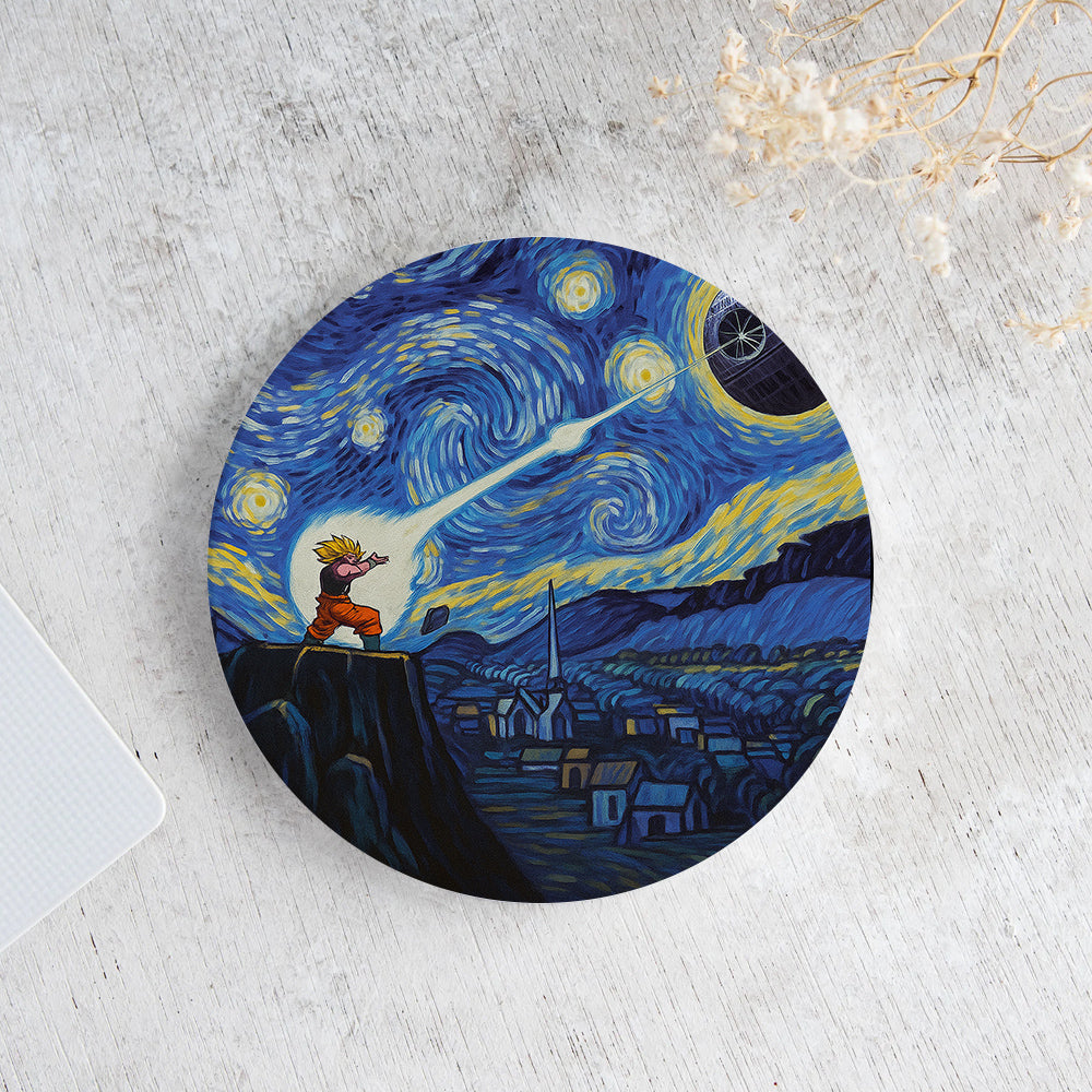 Goku Vs Death Star Starry Night Wood Decor Coaster - Gift Idea