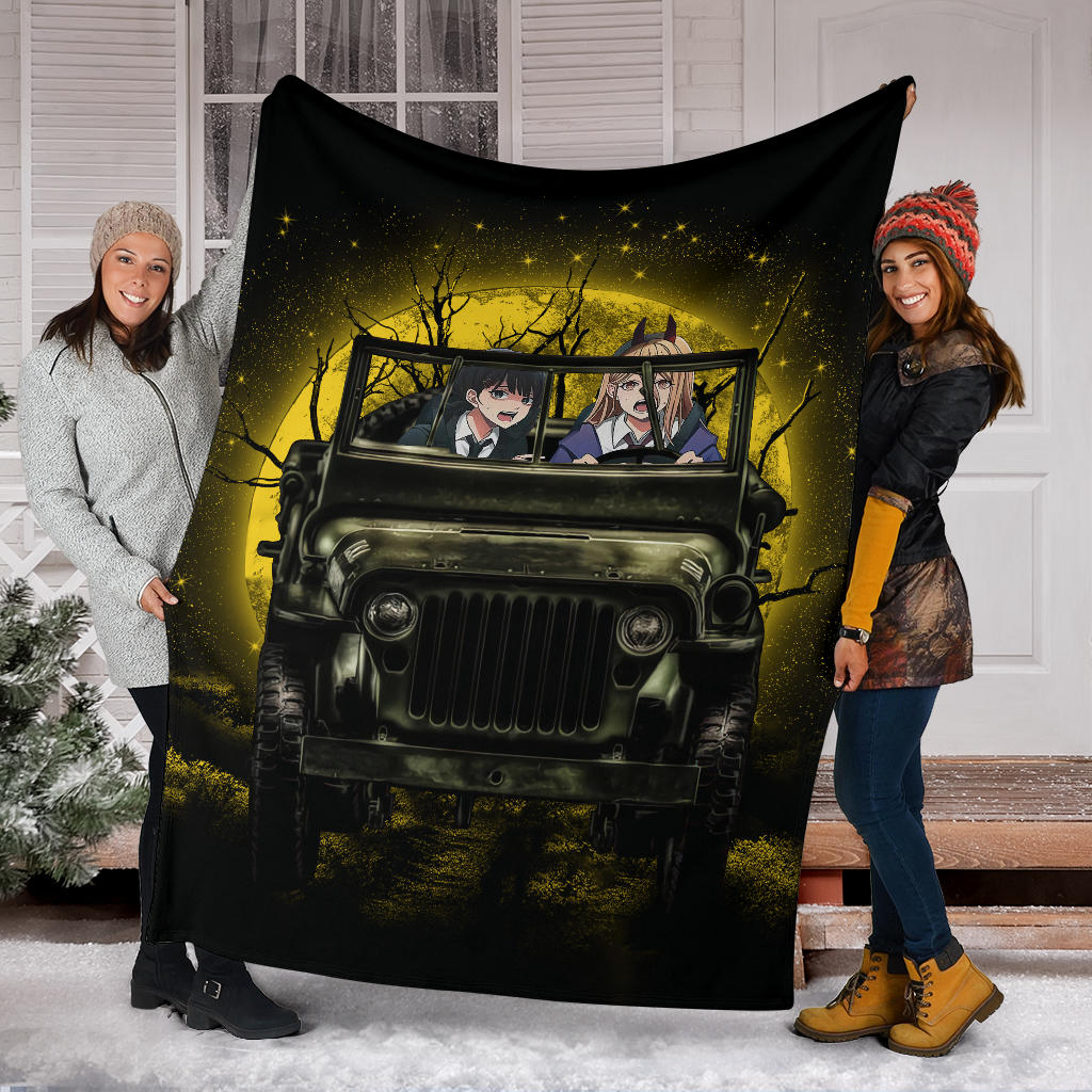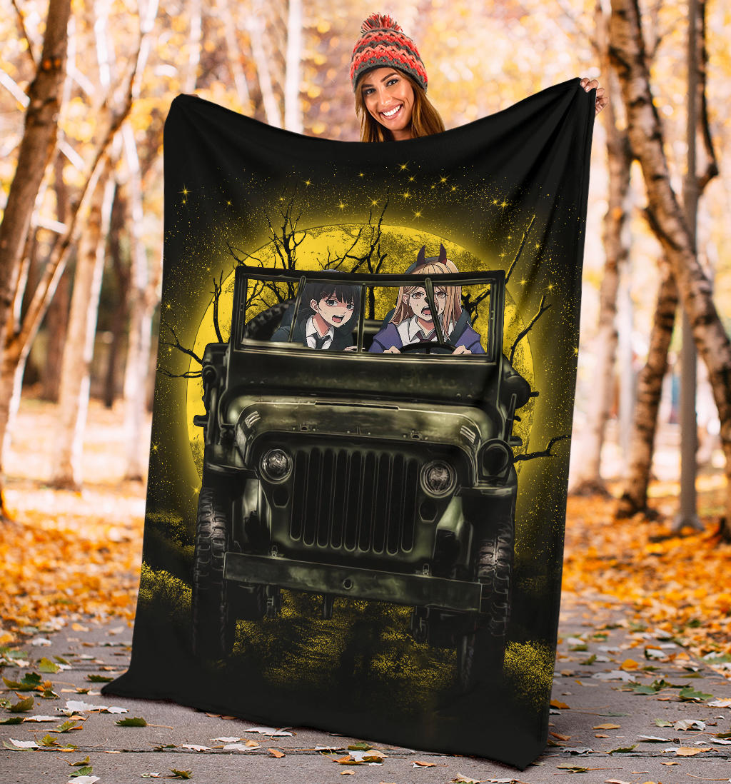 Chainsaw Man Anime Funny Halloween Moonlight Premium Blanket