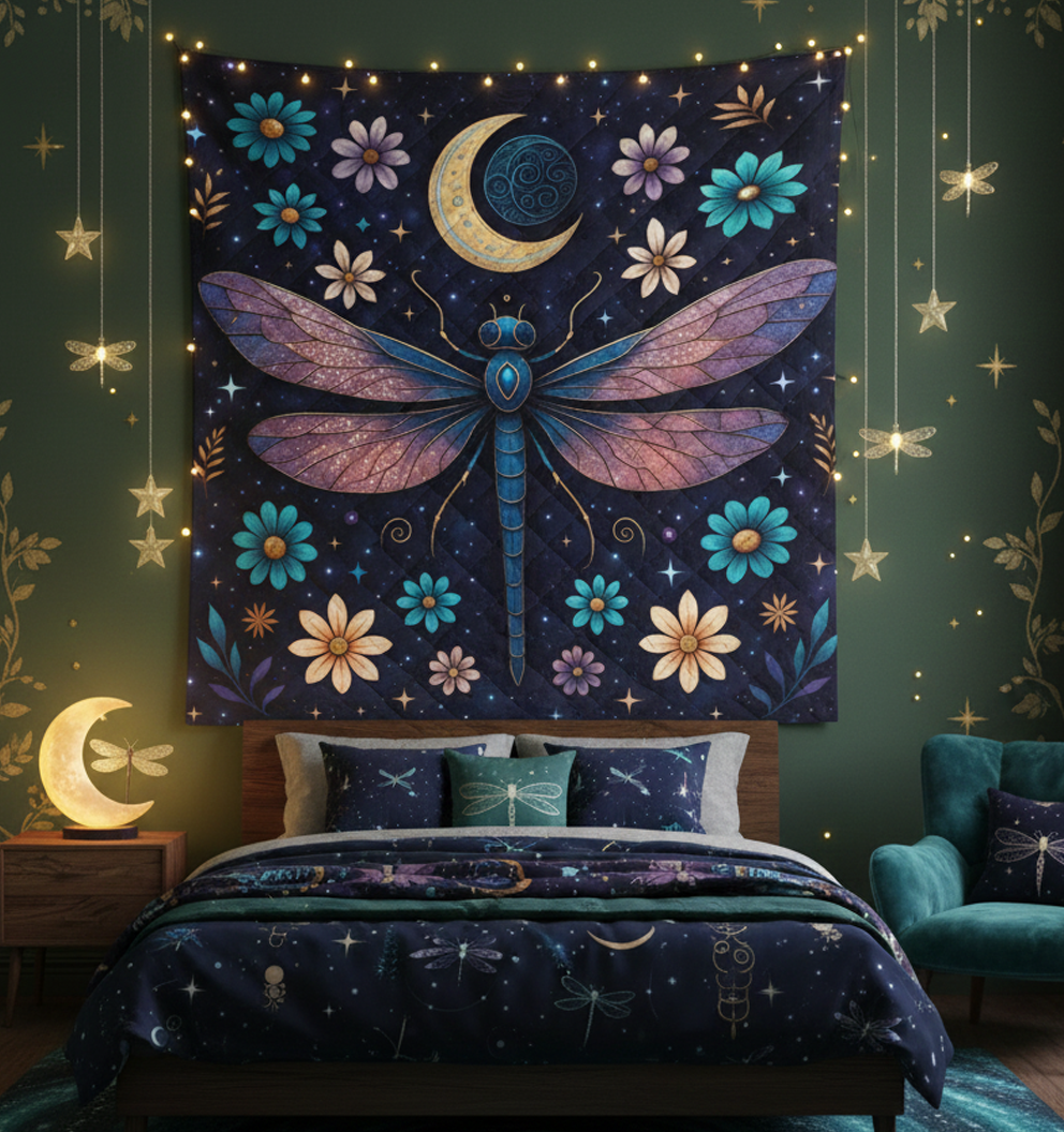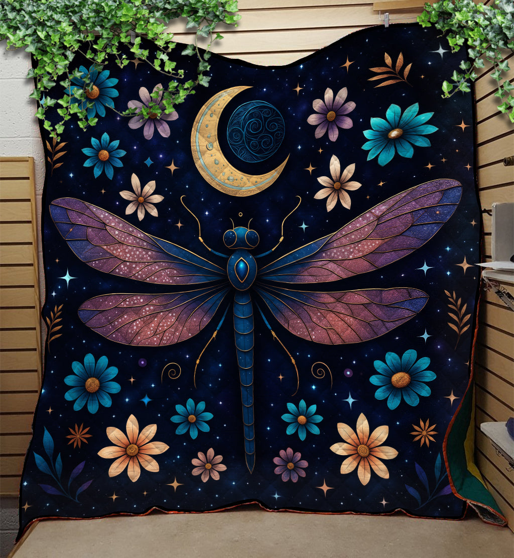 Luna Moth Moon Phase Art Dragonfly Quilt Blanket
