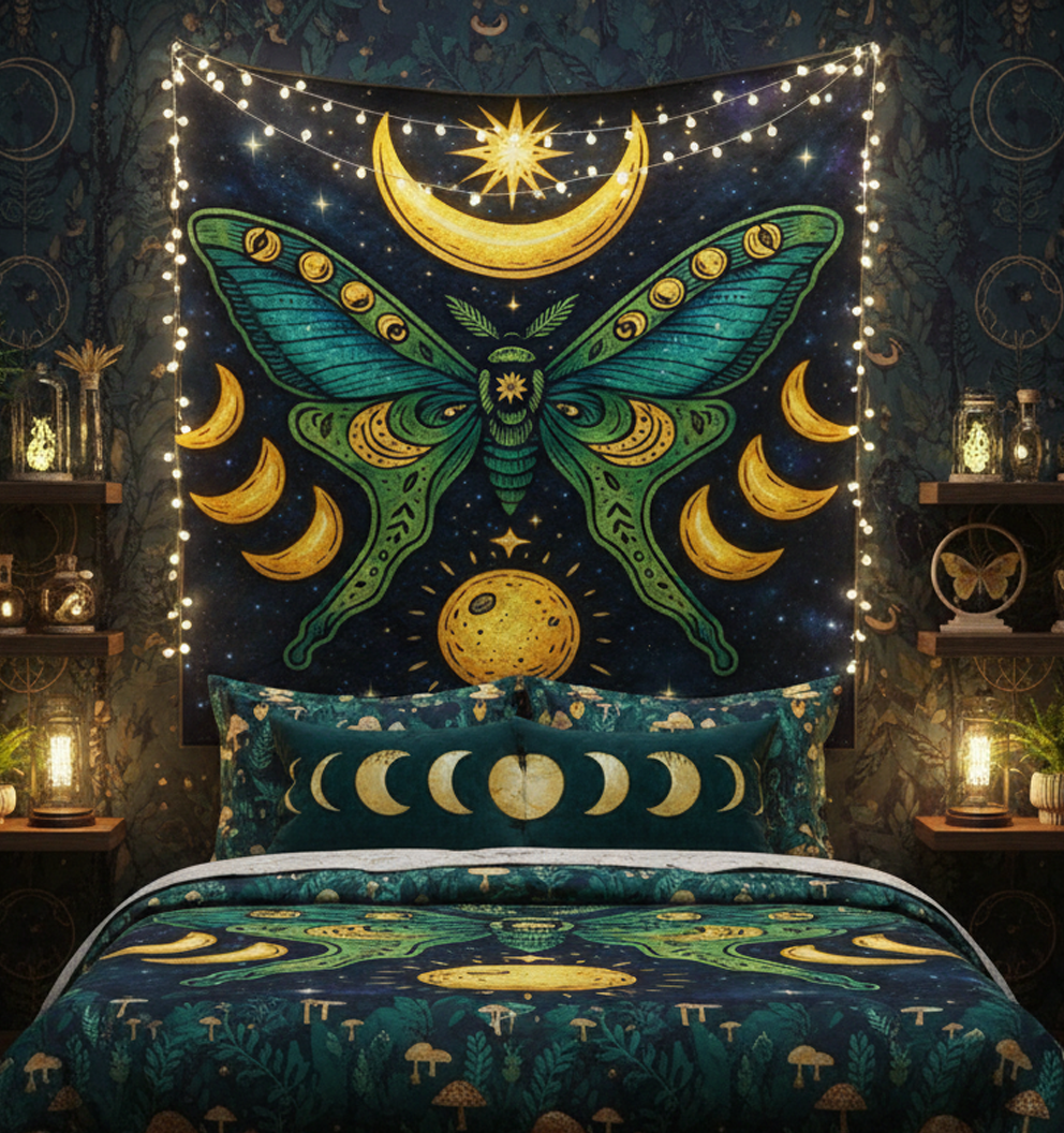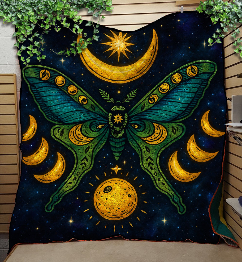 Moon Phase Galaxy Butterfly Quilt Blanket