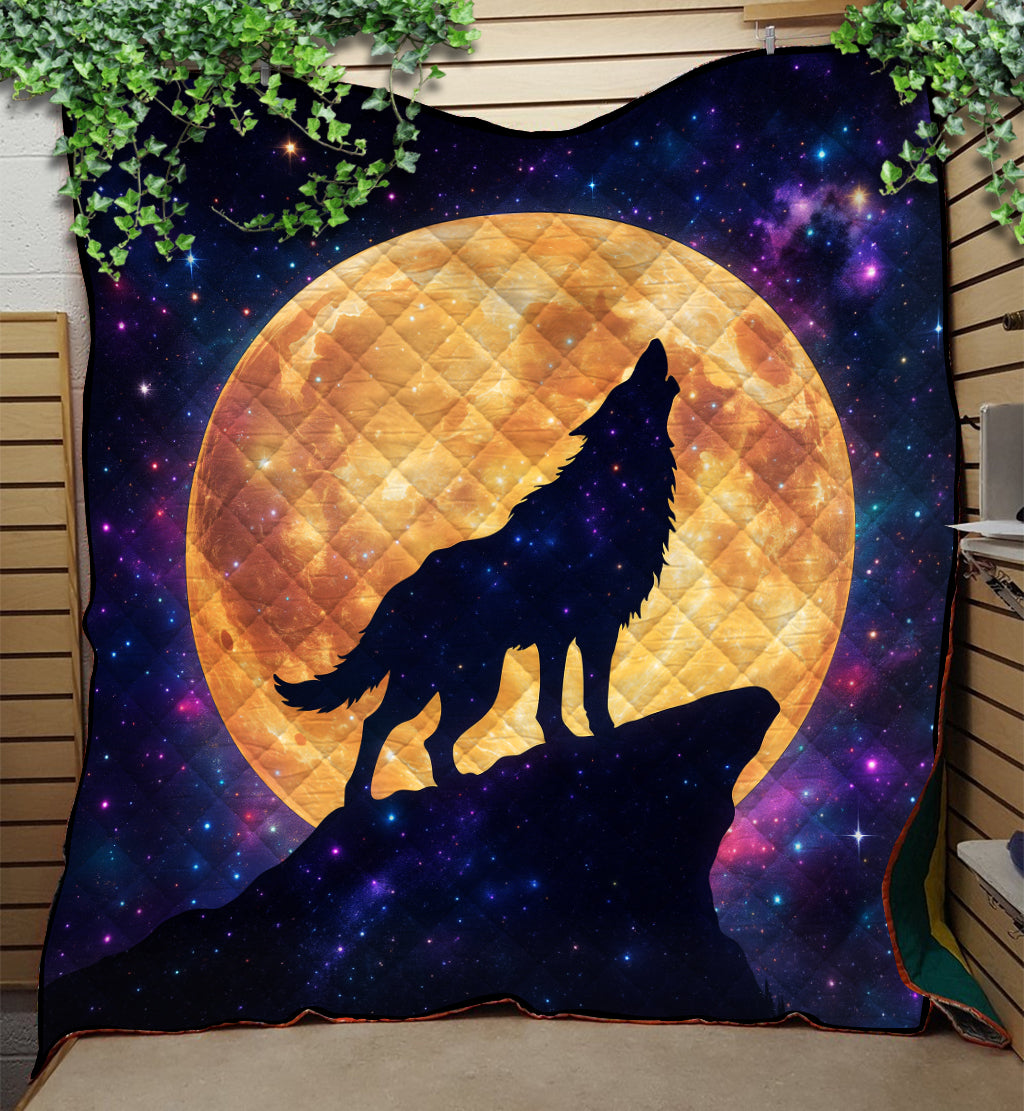 Moon Wolf Galaxy Quilt Blanket
