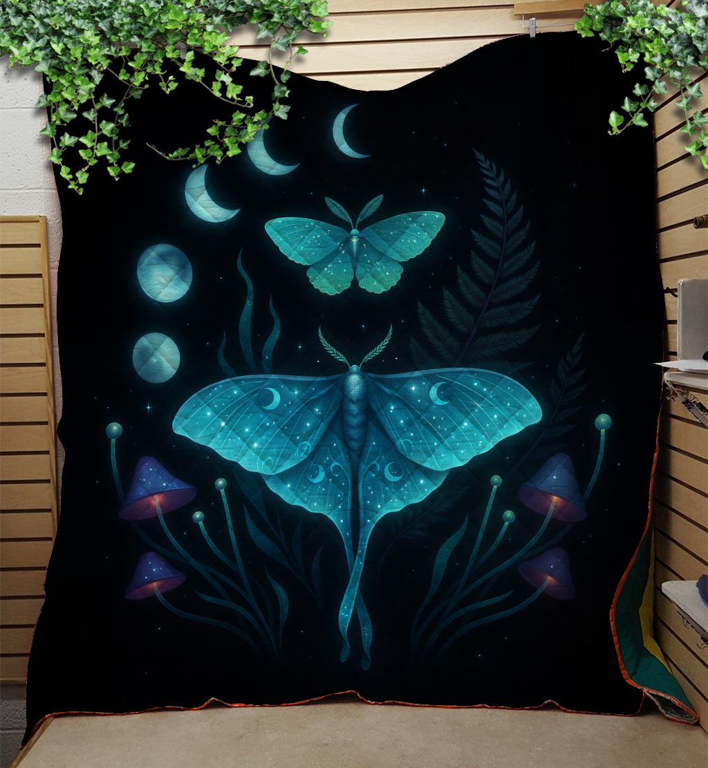 Mystic Luna Moth & Mushrooms Quilt Blanket