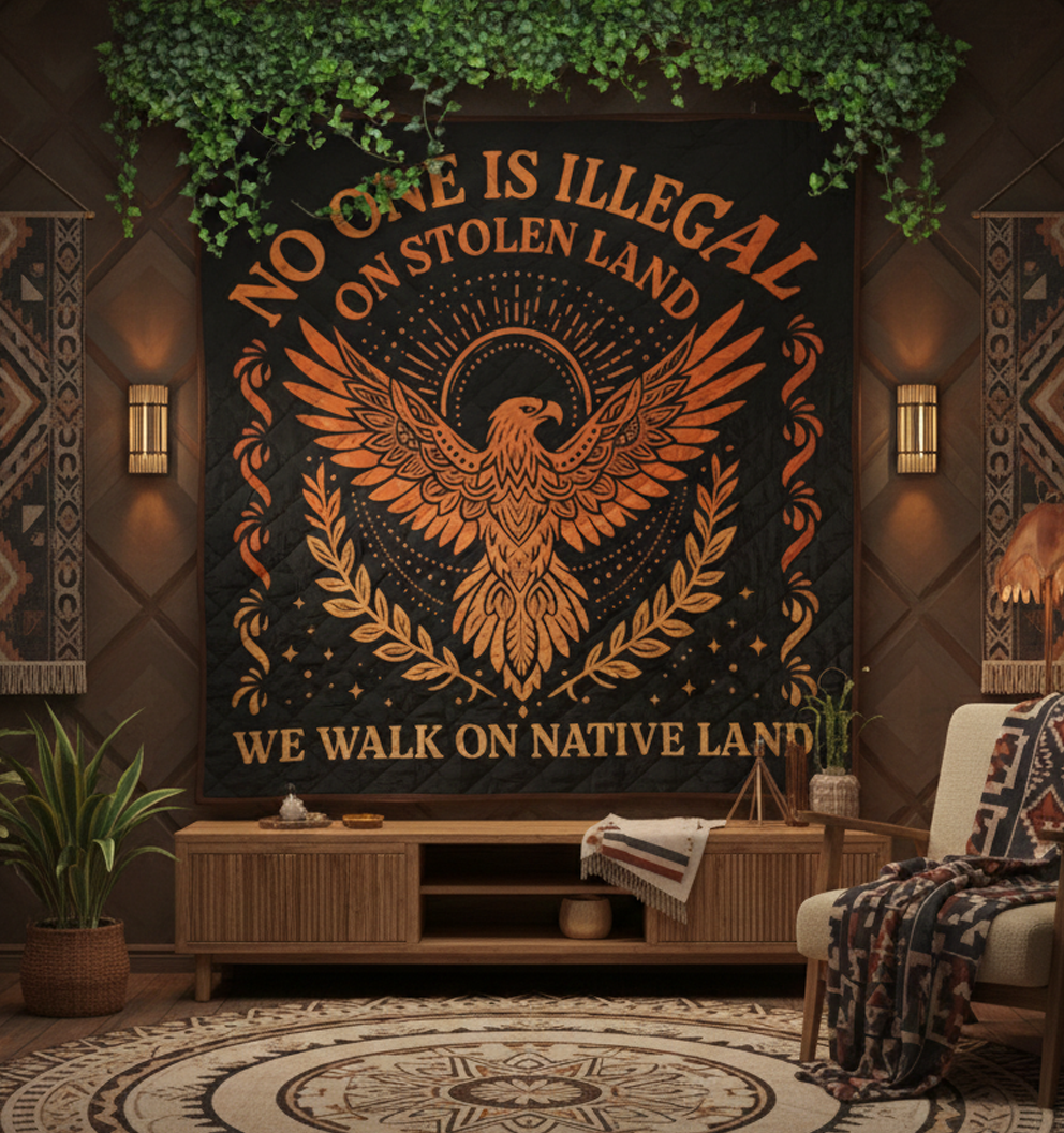 No One Is Illegal On Stolen Land Eagle Quilt Blanket