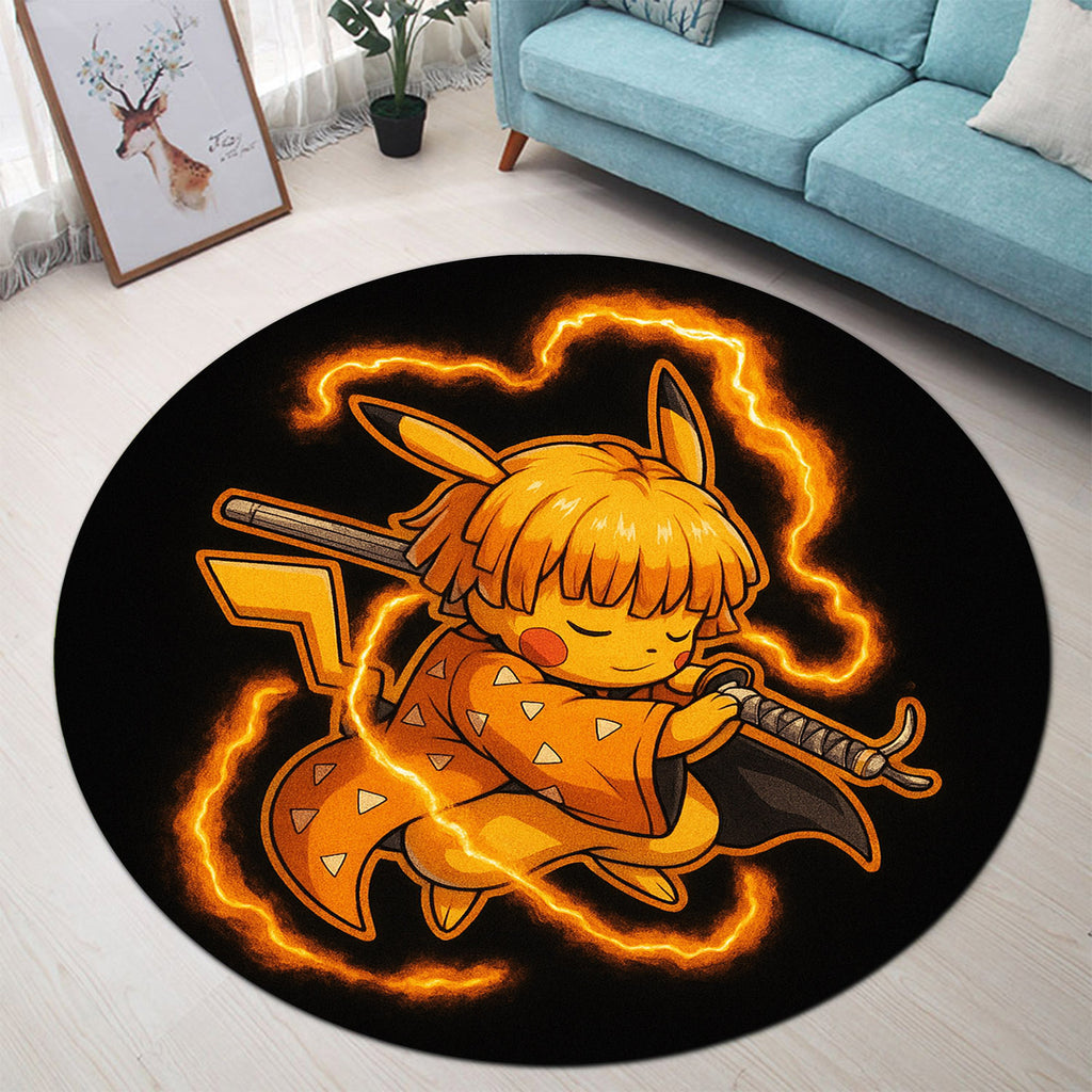 Cute Chibi Zenitsu Pikachu Demon Slayer Round Rug