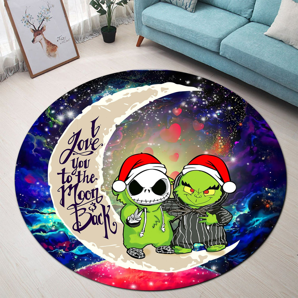 Grinch And Jack Nightmare Before Christmas Love You To The Moon Galaxy Round Rug
