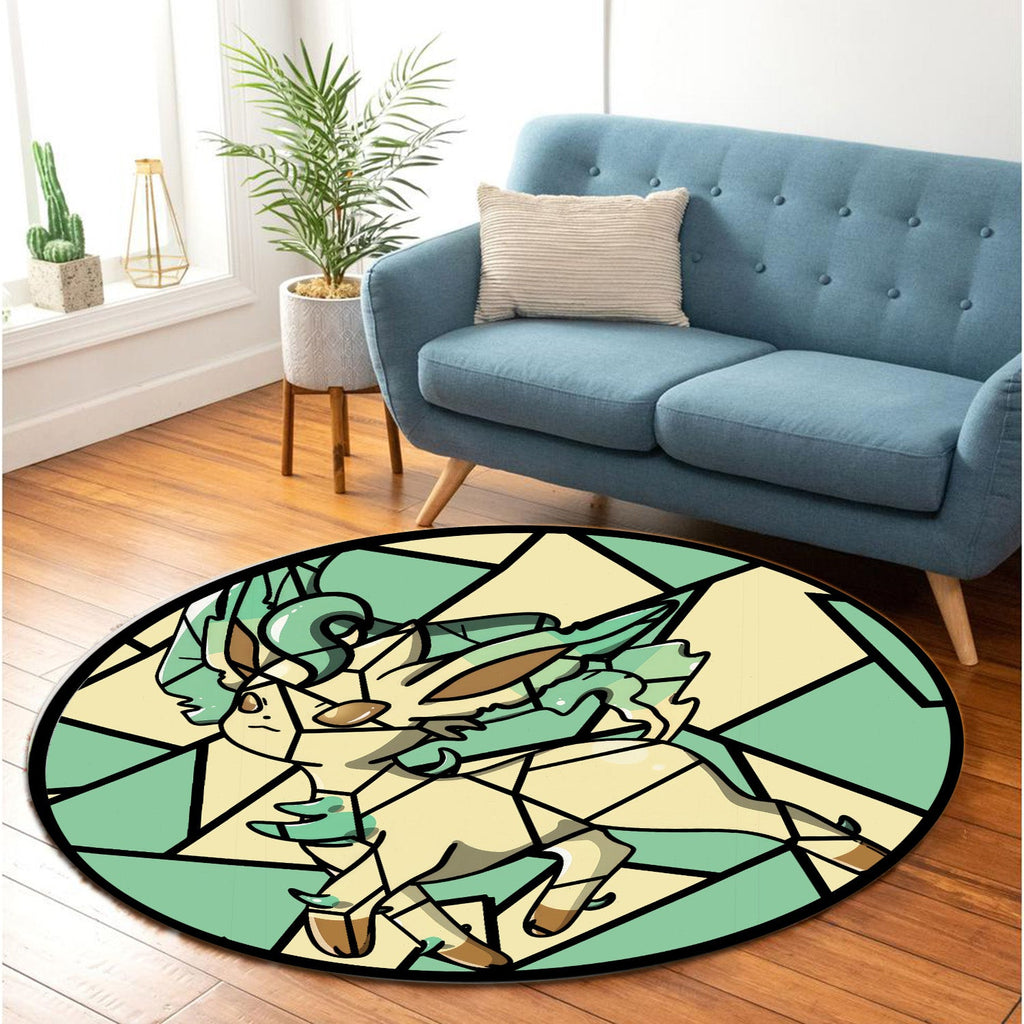 Leafeon Eevee Evolution Pokemon Stained Glass Round Rug