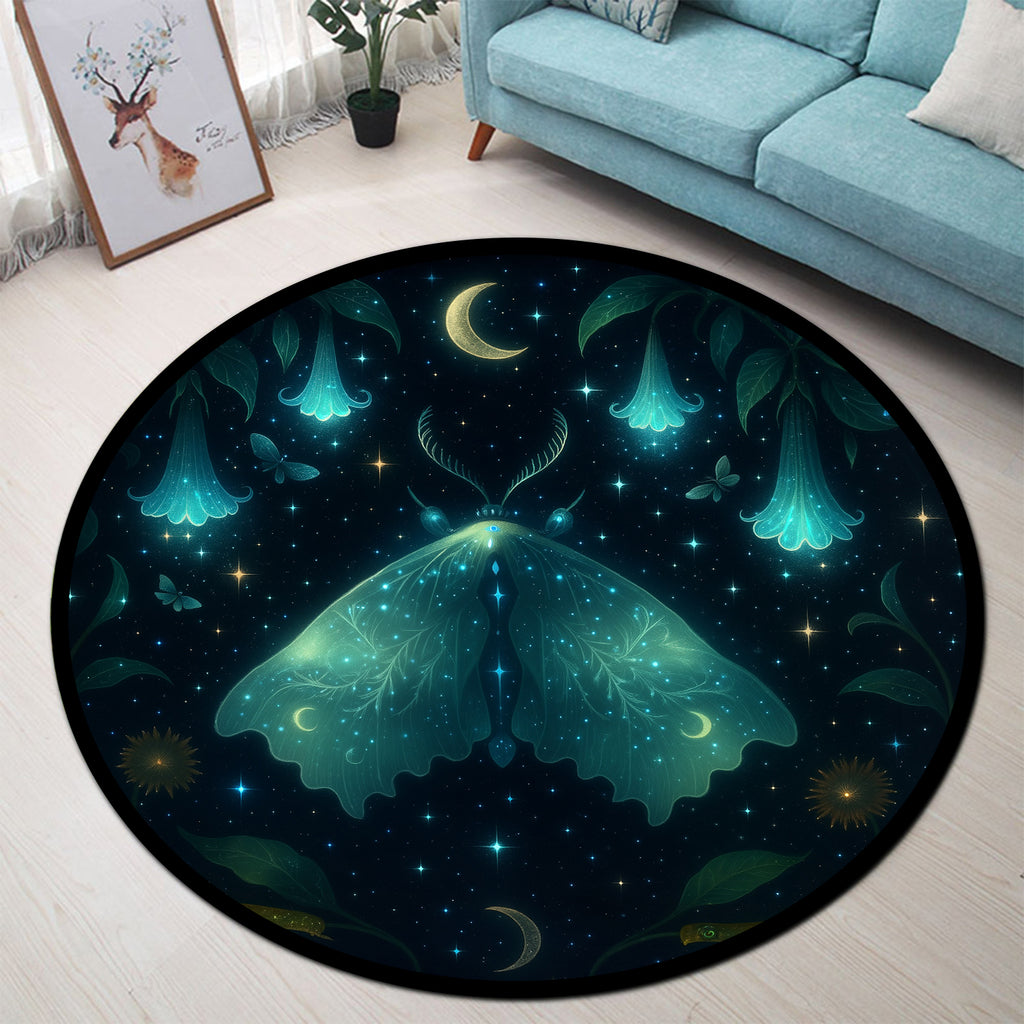 Moon Phase Galaxy Mystic Luna Moth Carpet Round Rug