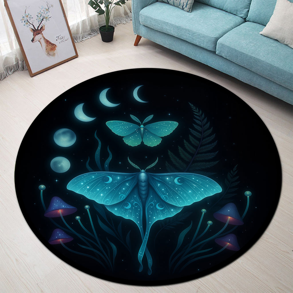 Mystic Luna Moth & Mushrooms Carpet Round Rug