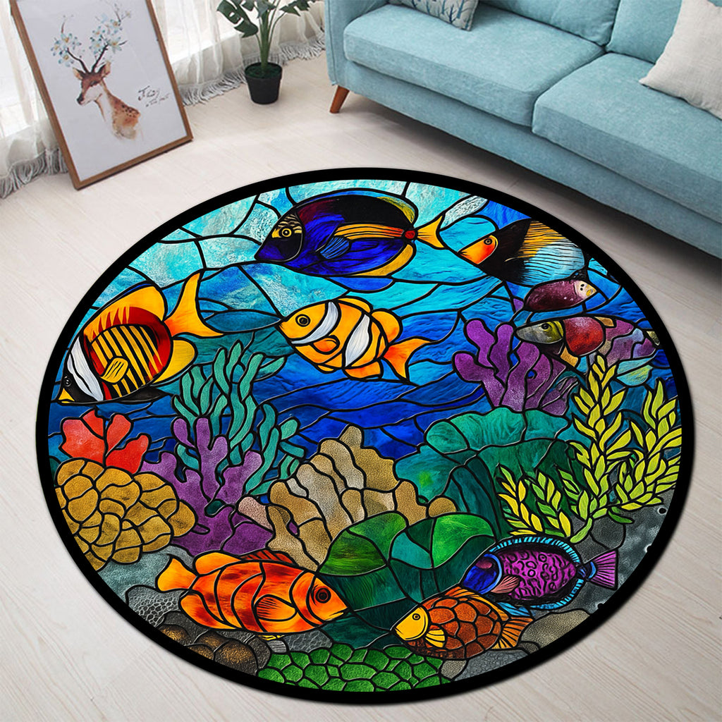 Nemo Deep Sea Corals Stained Glass Round Rug