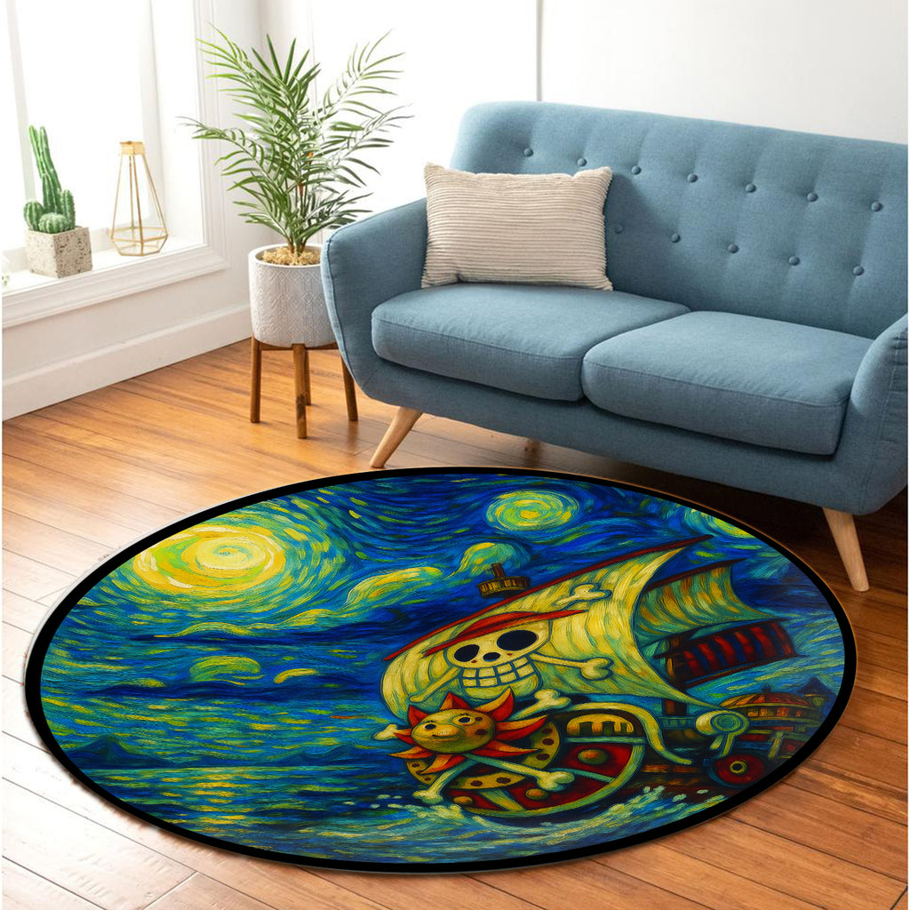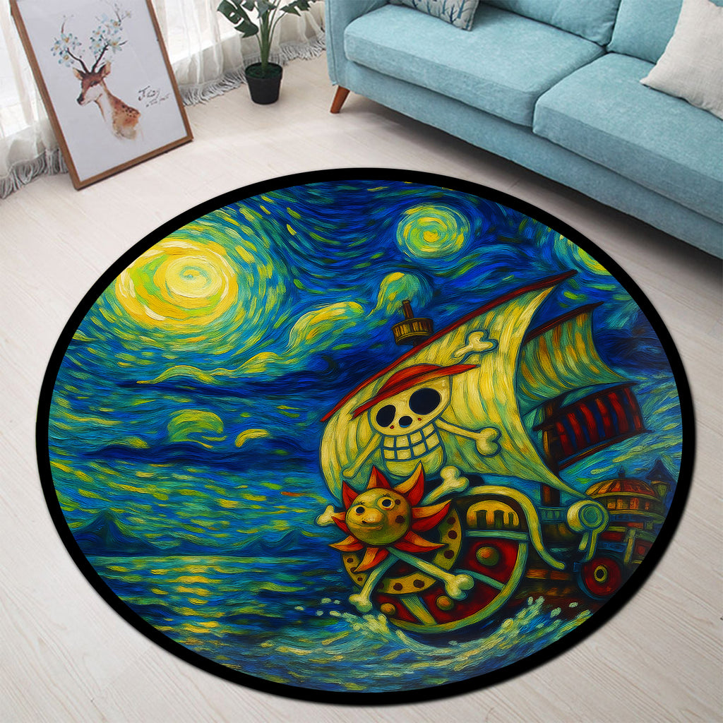 One Piece Ship Starry Night Carpet Round Rug