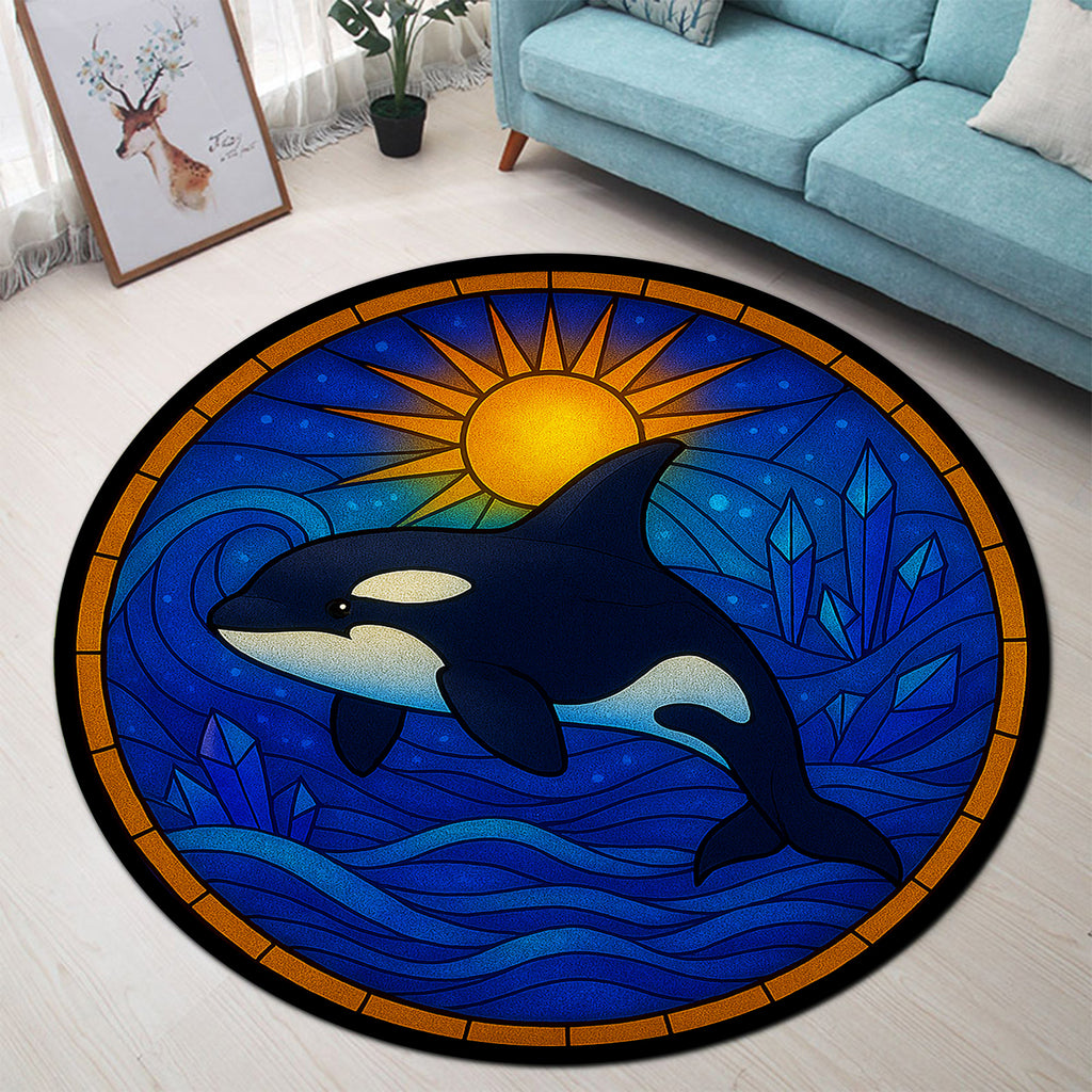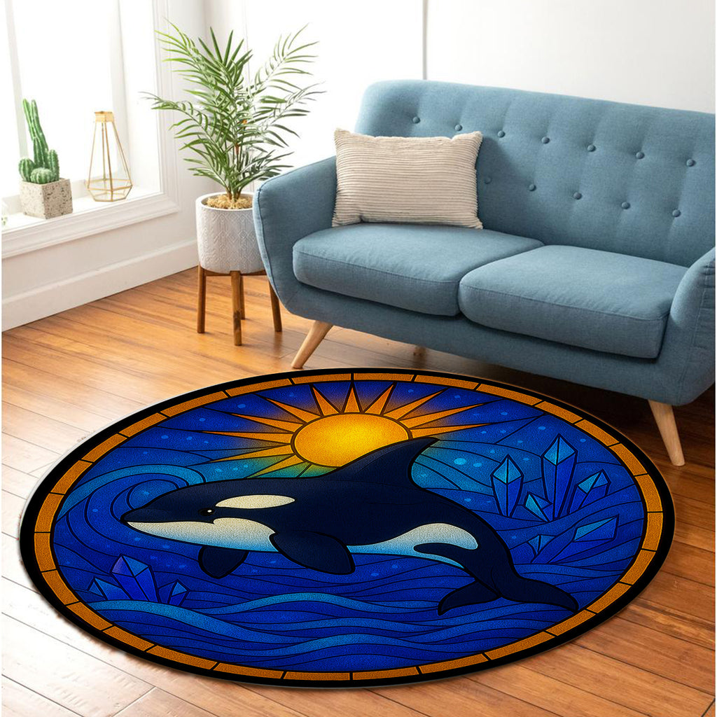 Orca Whale Pokemon Sun Stained Glass Round Rug