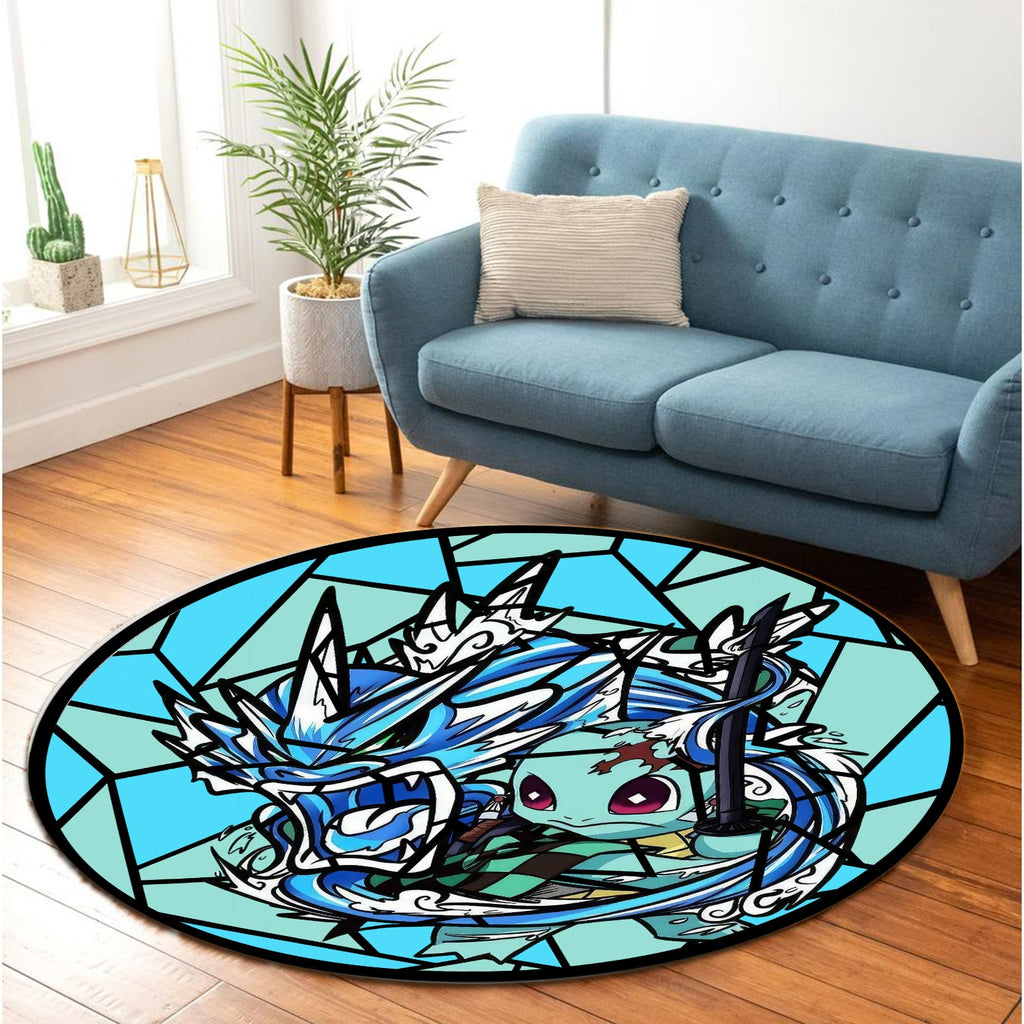 Squirtle Giyu Pokemon Stained Glass Round Rug