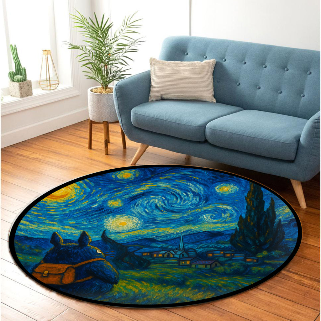 Totoro Travel Starry Night Carpet Round Rug