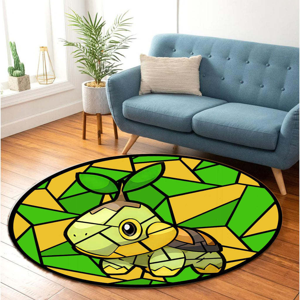 Turtwig Pokemon Stained Glass Round Rug