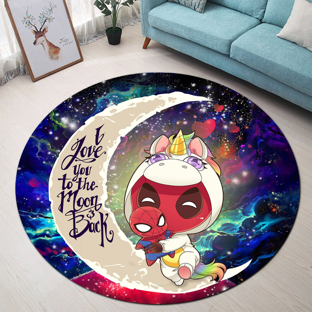 Unicorn Deadpool And Spiderman Avenger Love You To The Moon Galaxy Round Rug