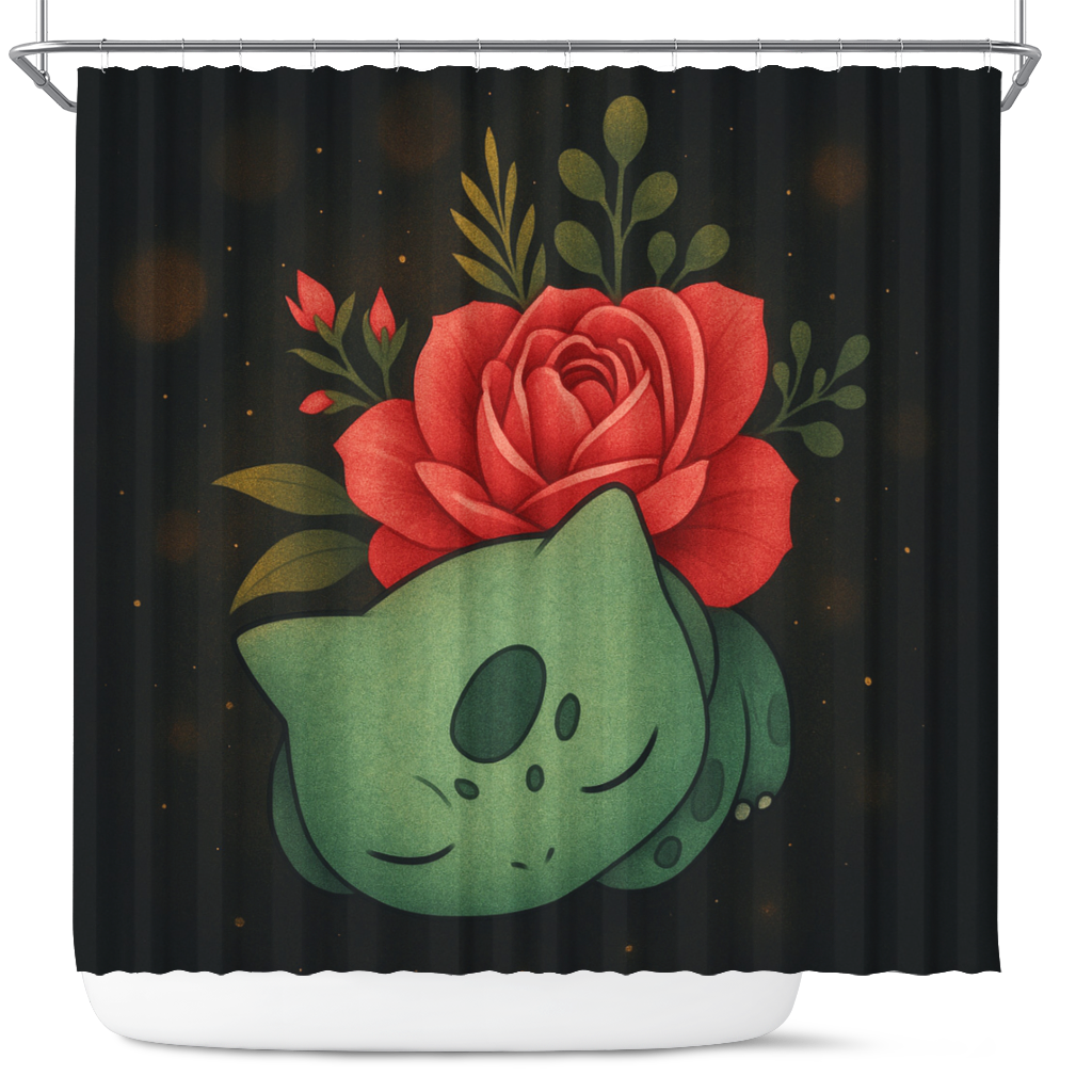 A Sleeping Bulbasaur With A Large Blooming Shower Curtain