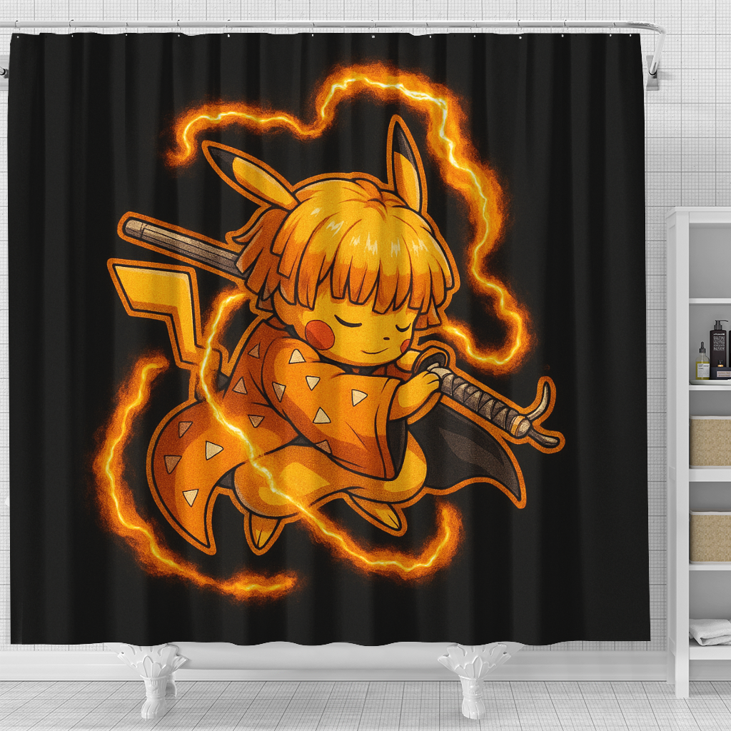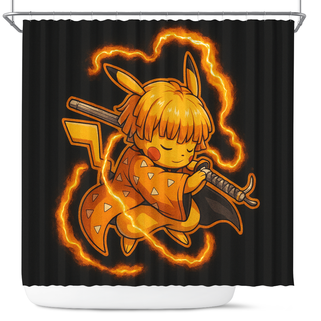 Cute chibi Zenitsu Pikachu Demon Slayer Shower Curtain