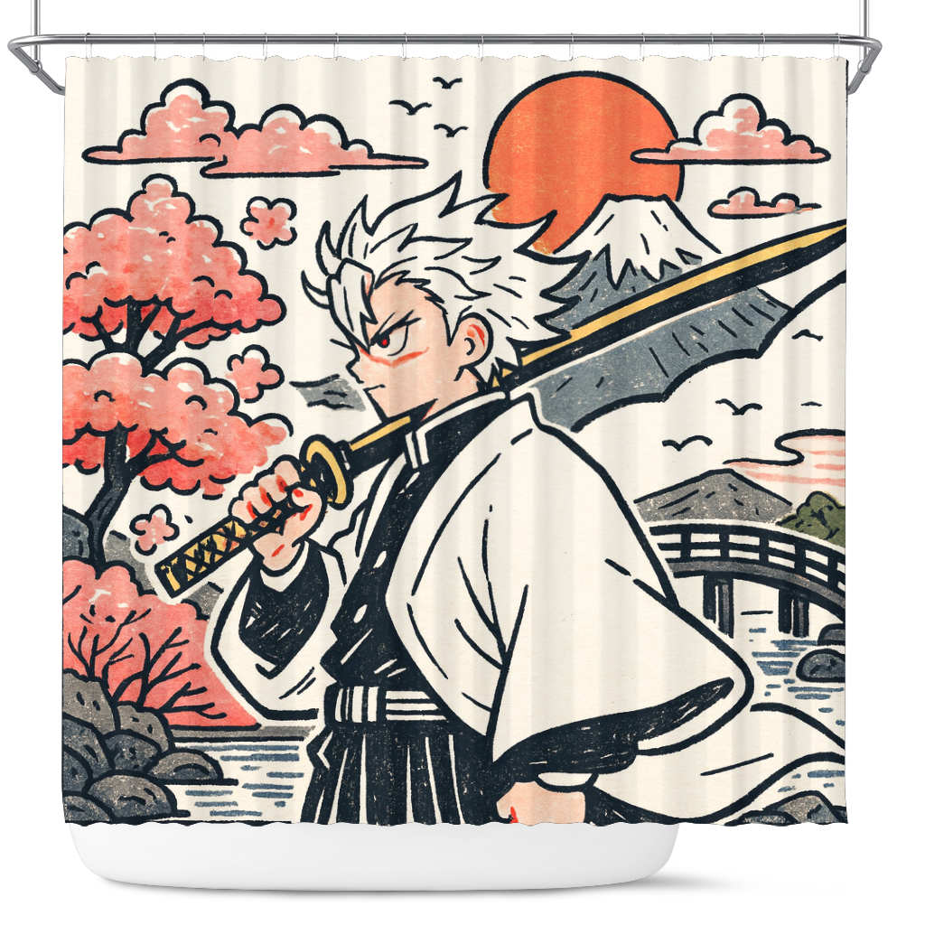 Demon Slayer Sanemi Anime Japan Ink Style Shower Curtain