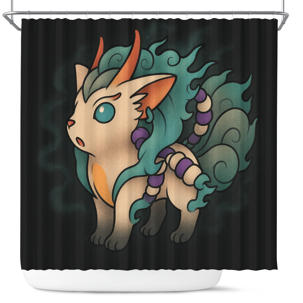 Flareon Pokemon x Kitsune Spirit Shower Curtain
