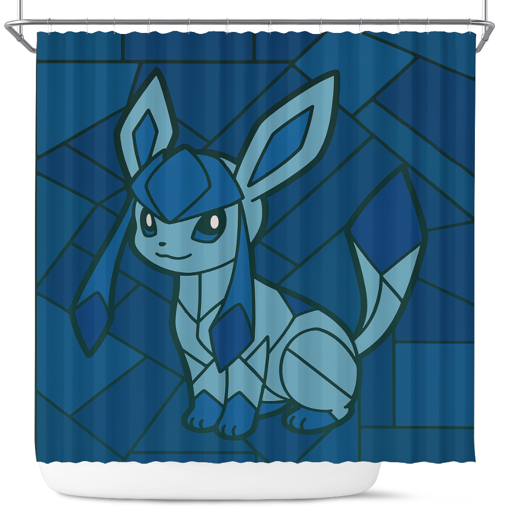Glaceon Eevee Pokemon Stained Glass Shower Curtain