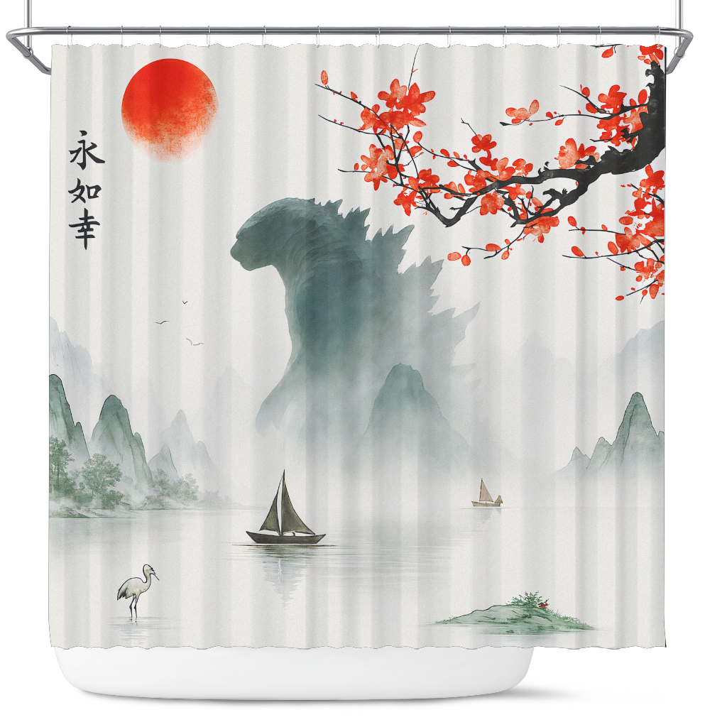 Godzilla In The Japan Landscape Stained Glass Pokemon Shower Curtain