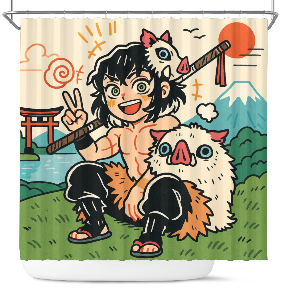 Hashibira Inosuke Demon Slayer Japan Ink Style Shower Curtain