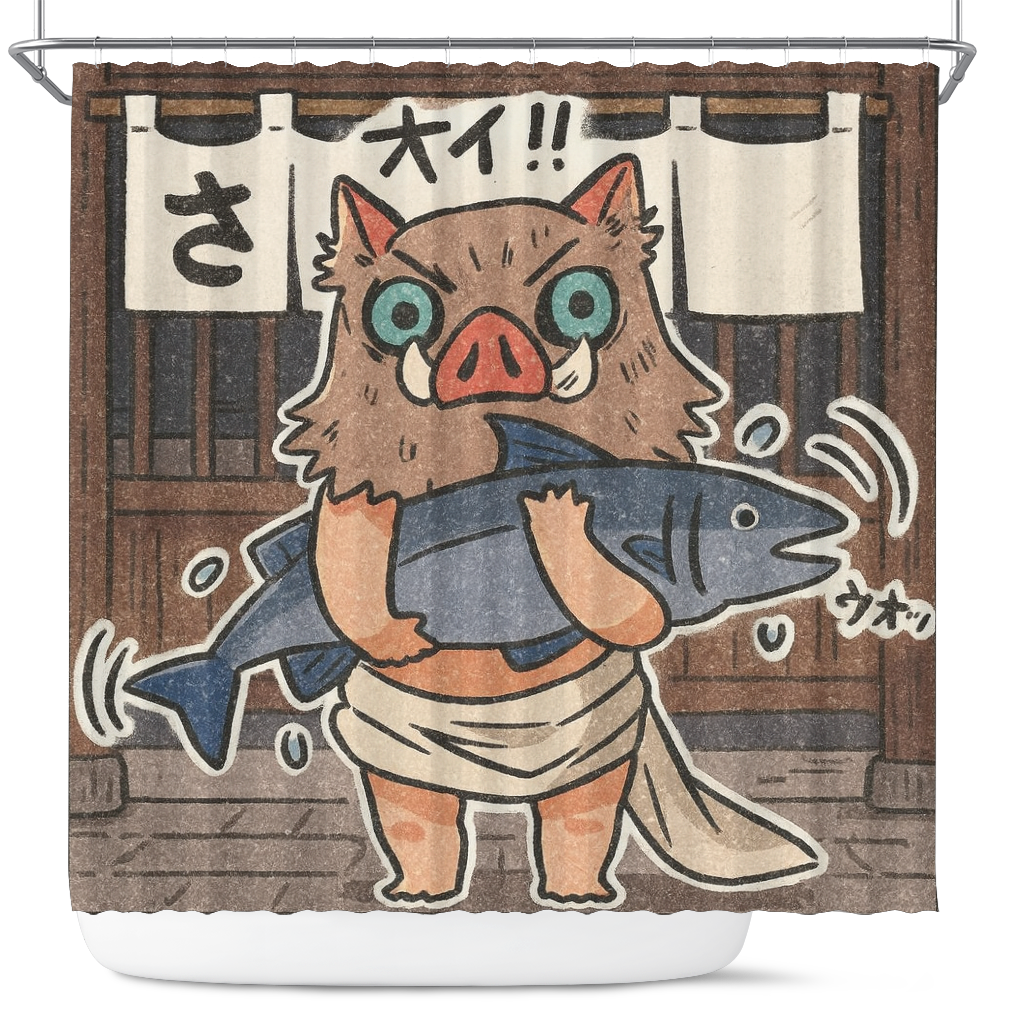 Inosuke Hashibira Demon Slayer Anime Japan Ink Style Shower Curtain