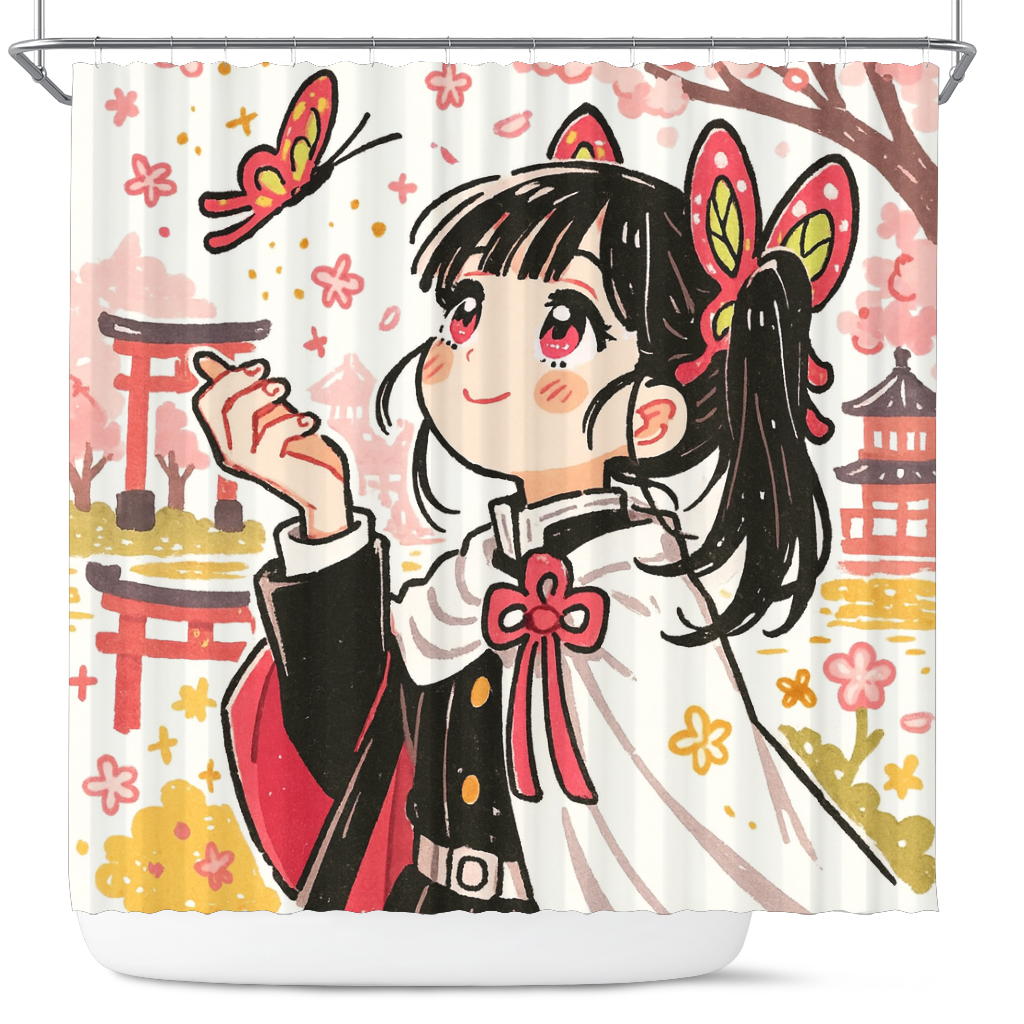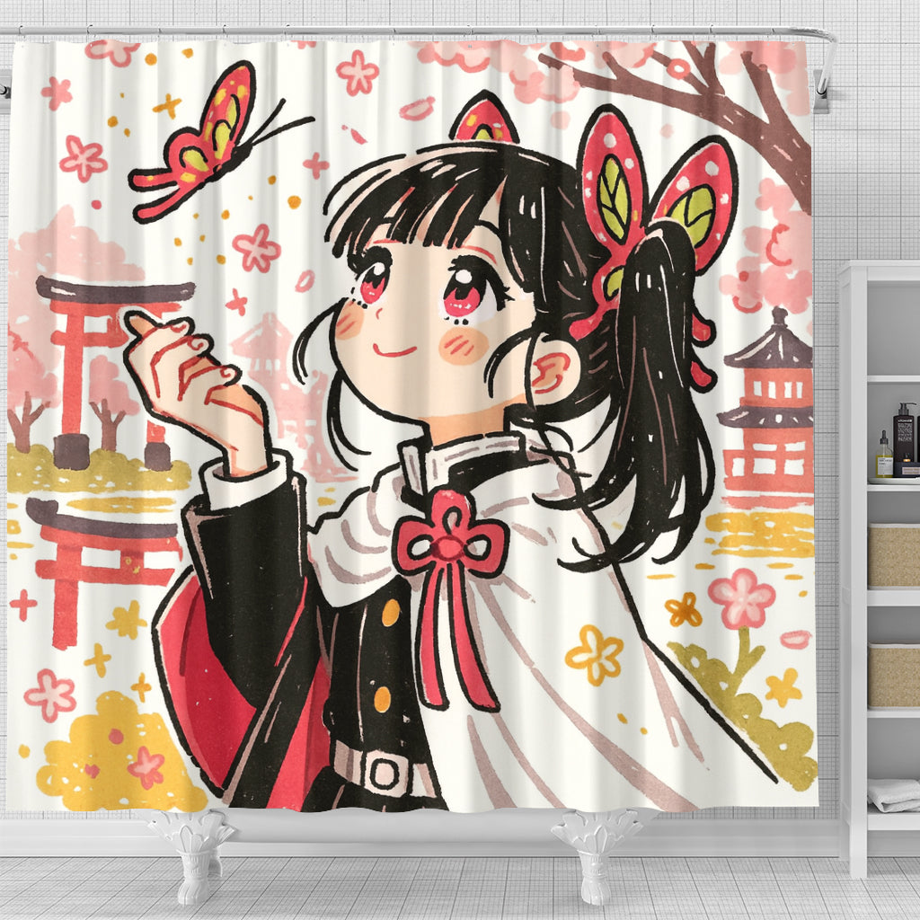 Kanao Demon Slayer Japan Ink Style Shower Curtain