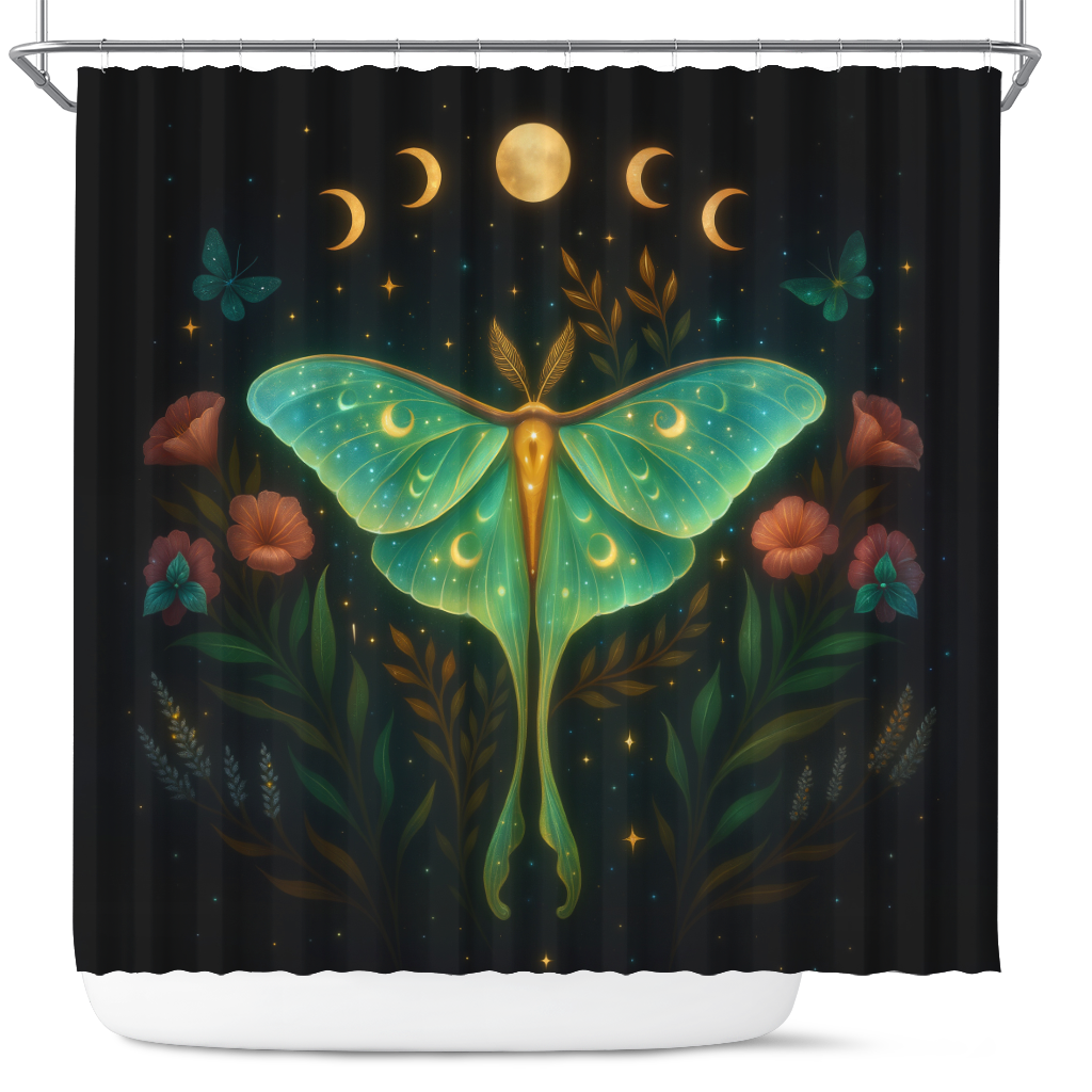 Luna Moth Moon Phase Art Shower Curtain