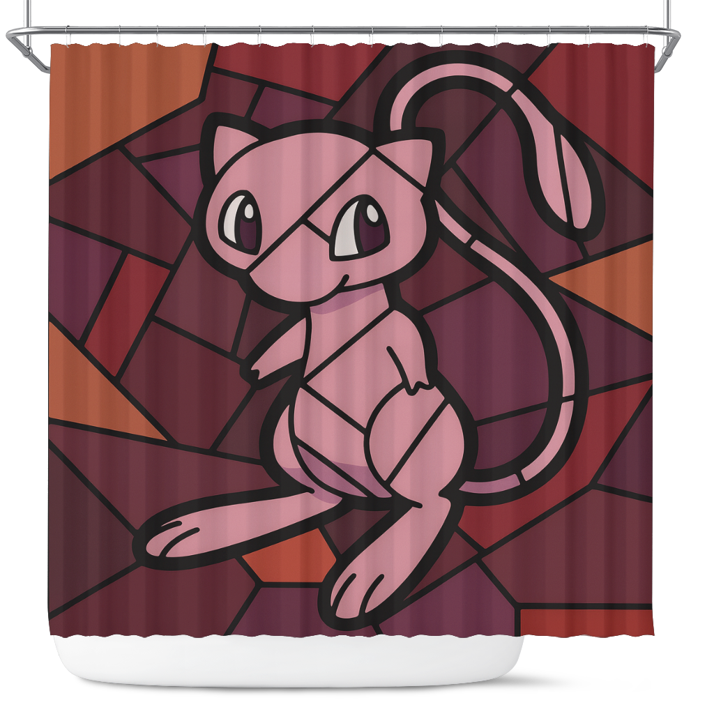 Mew Pokemon Stained Glass Shower Curtain