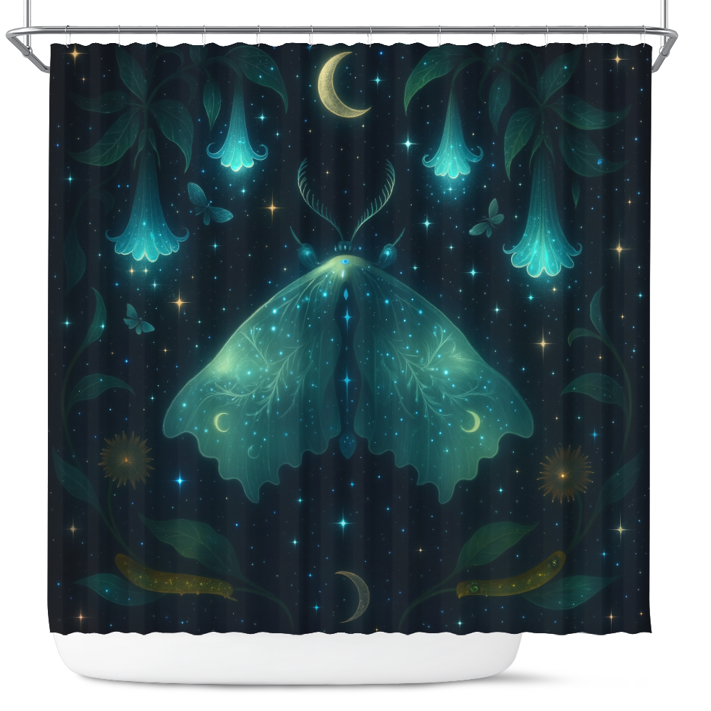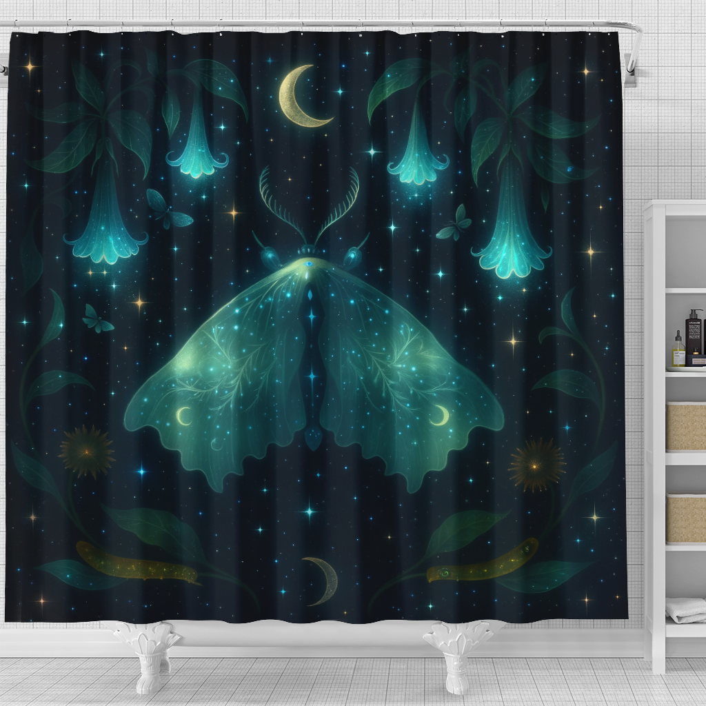 Moon Phase Galaxy Mystic Luna Moth Shower Curtain