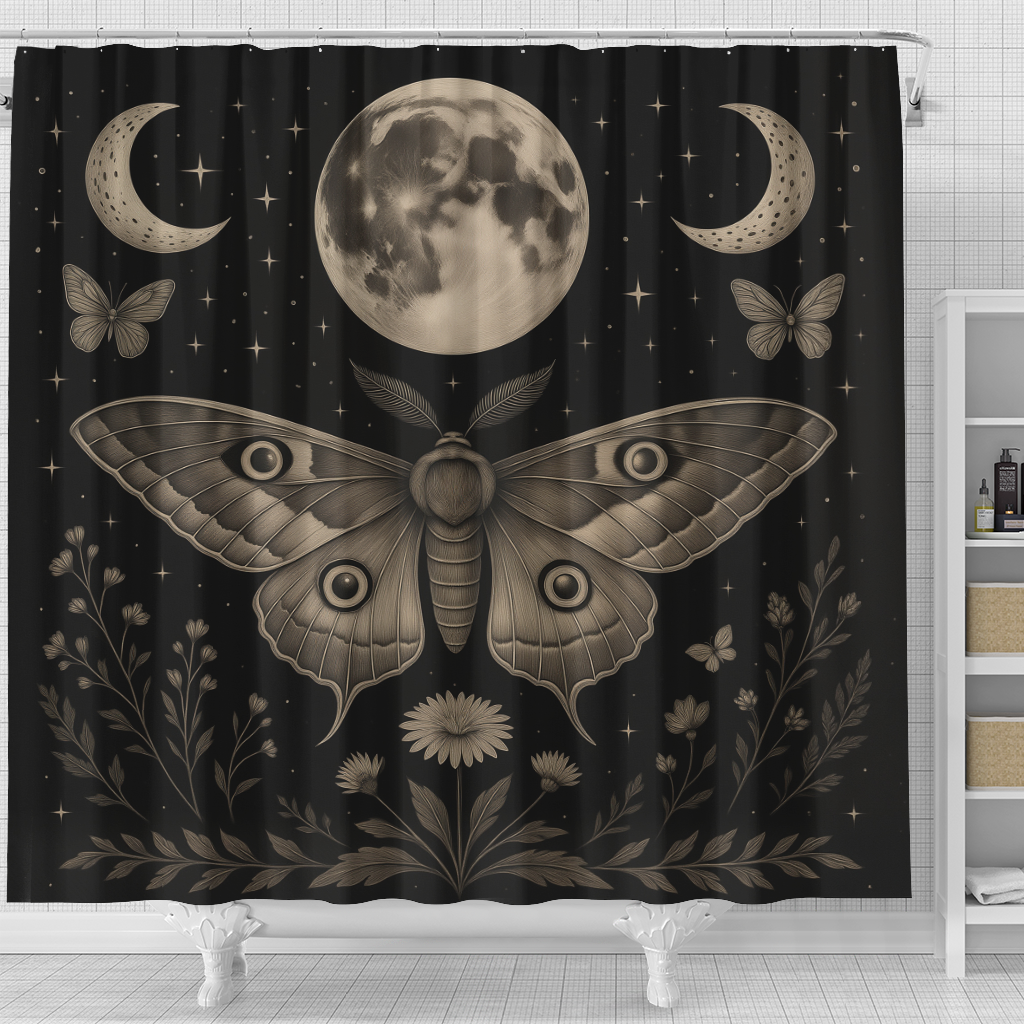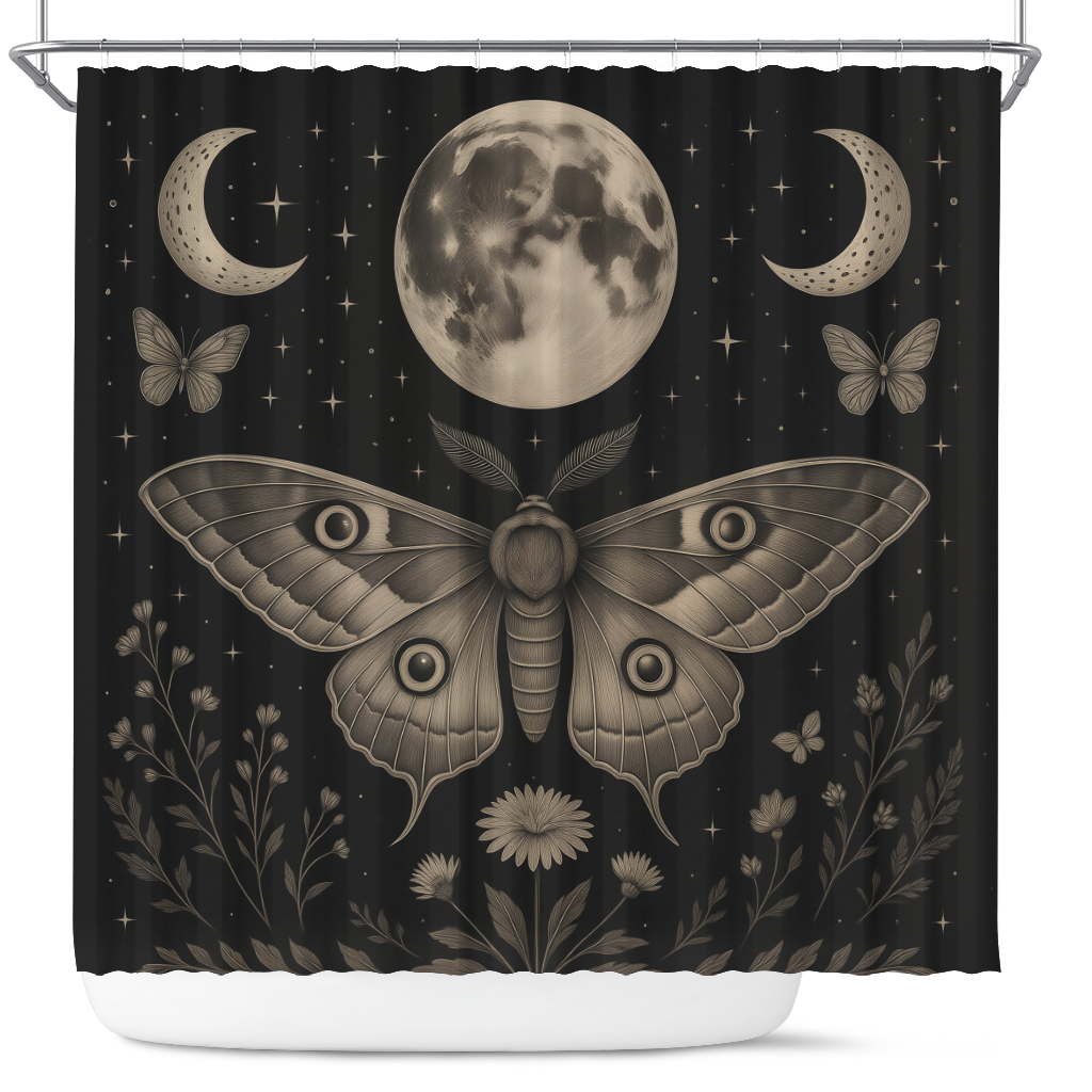 Mystic Moon Phase Moth Shower Curtain