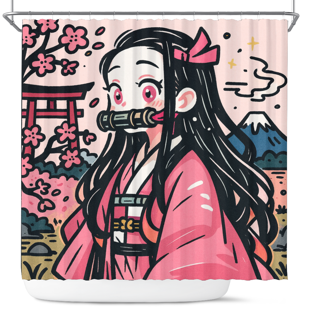 Nezuko Demon Slayer Japan Ink Style Shower Curtain