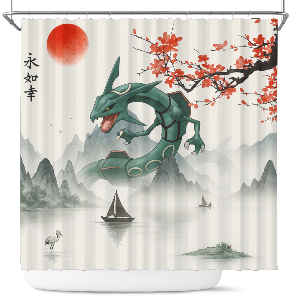 Rayquaza Pokemon In The Japan Landscape Shower Curtain