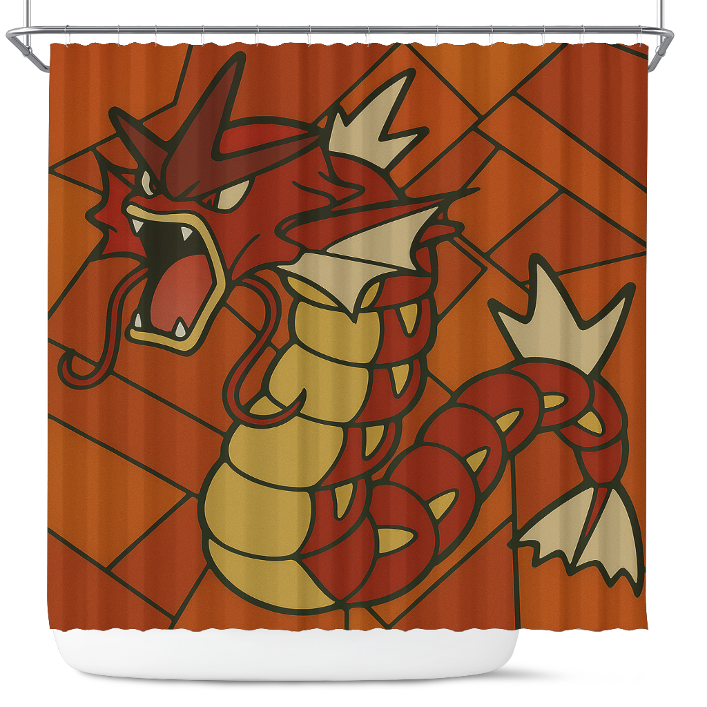 Red Gyarados Stanied Glass Pokemon Shower Curtain