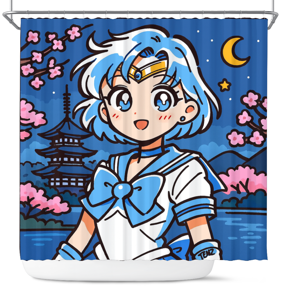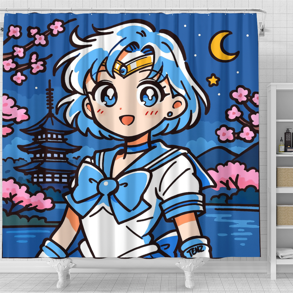 Mercury Sailor Moon Japan Ink Style Shower Curtain
