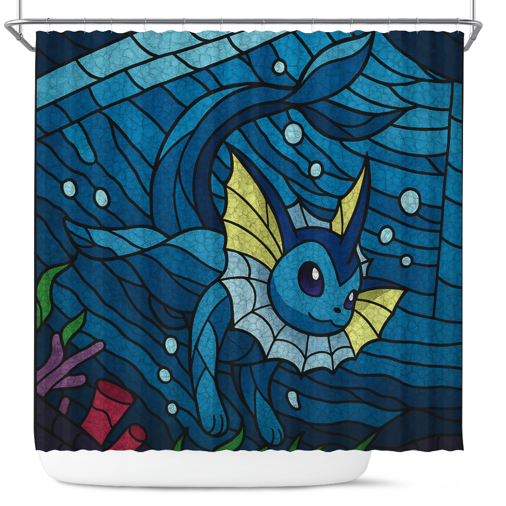 Vaporeon Pokemon Stained Glass Shower Curtain