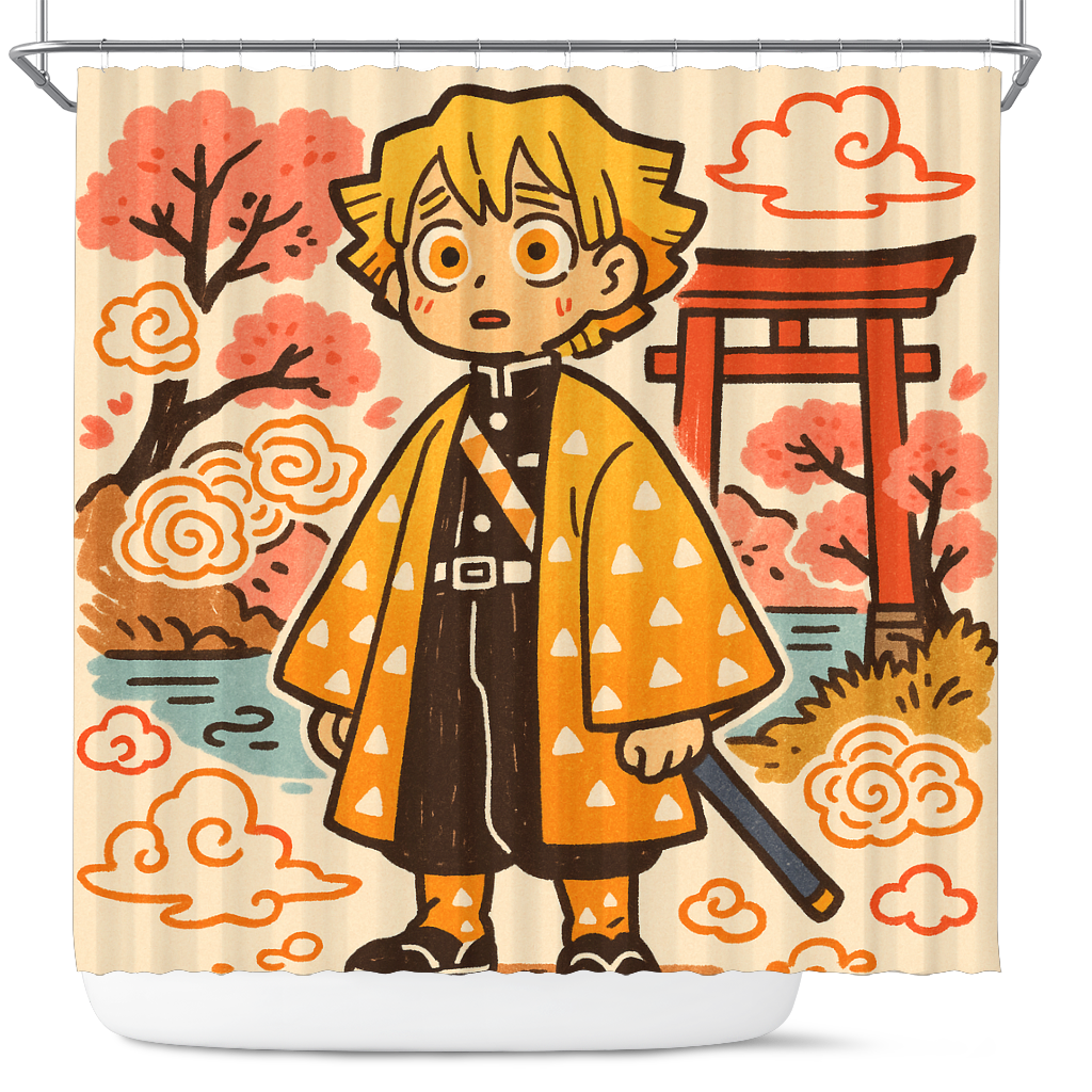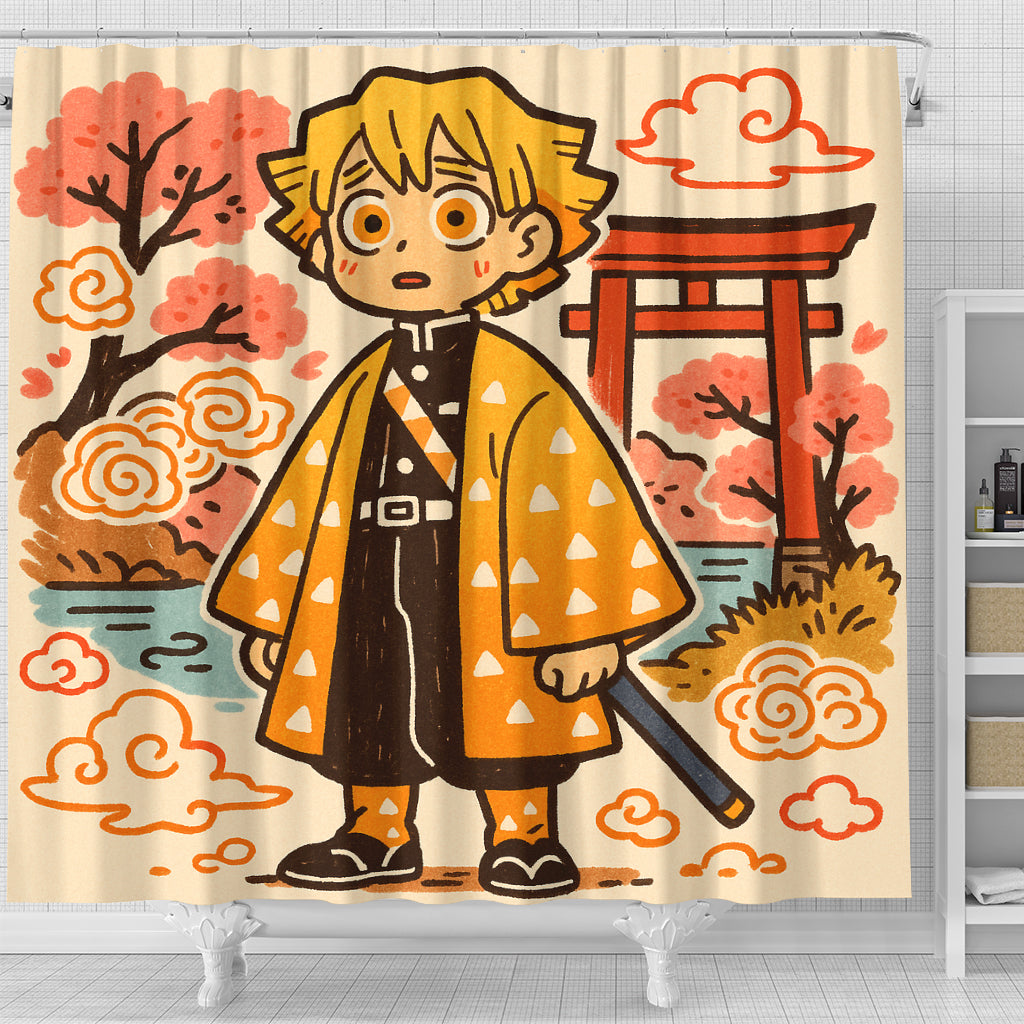 Zenitsu Demon Slayer Japan Ink Style Shower Curtain