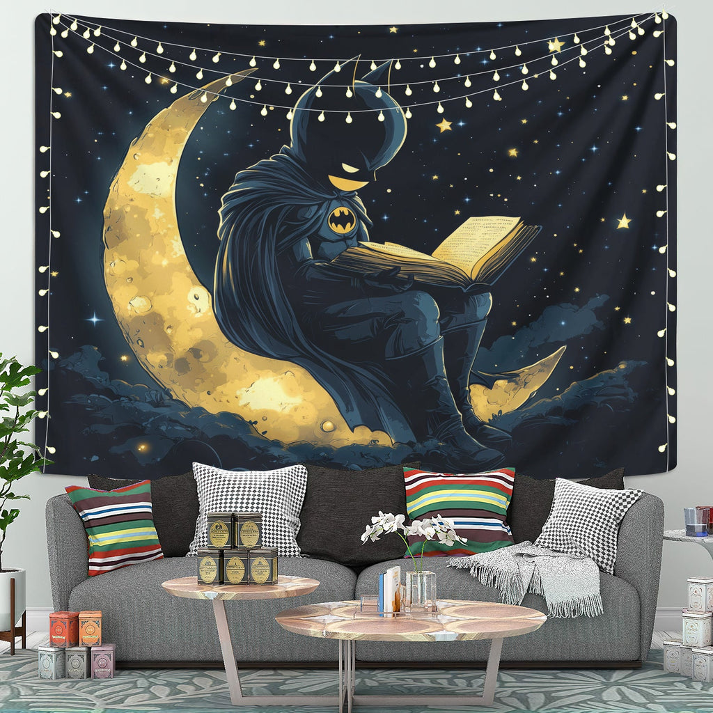 Batman Reading On A Crescent MoonTapestry
