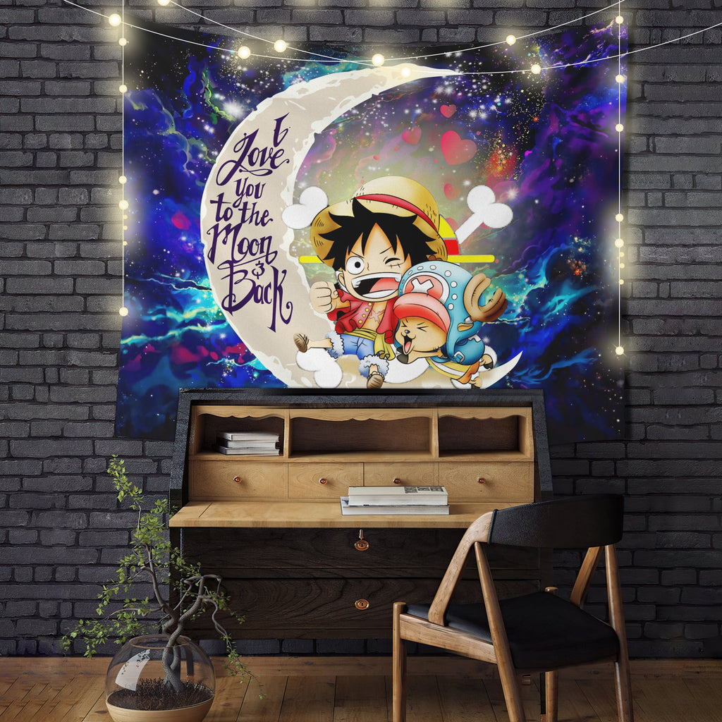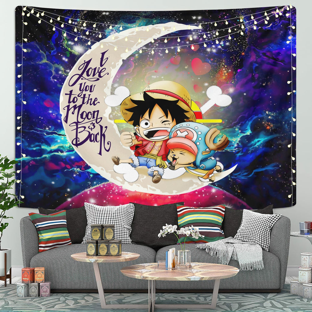 Chibi Luffy And Chopper One Piece Anime Love You To The Moon Galaxy Tapestry