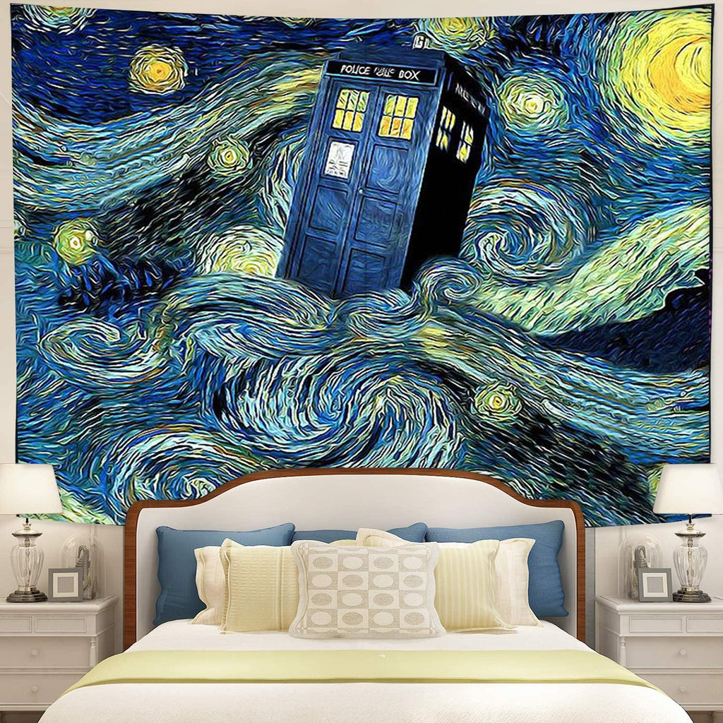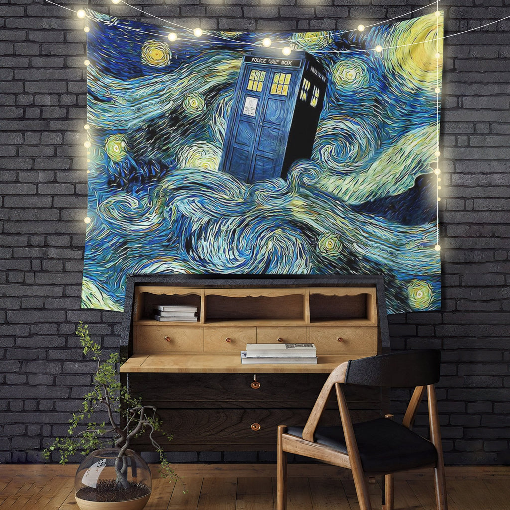 Starry Night Police Telephone Box Tapestry