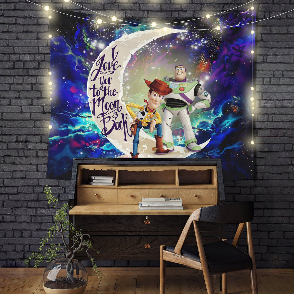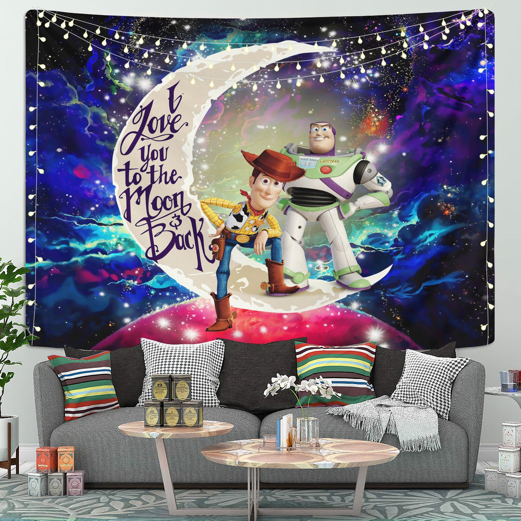 Woody And Buzz Toy Story Love To The Moon Galaxy Tapestry