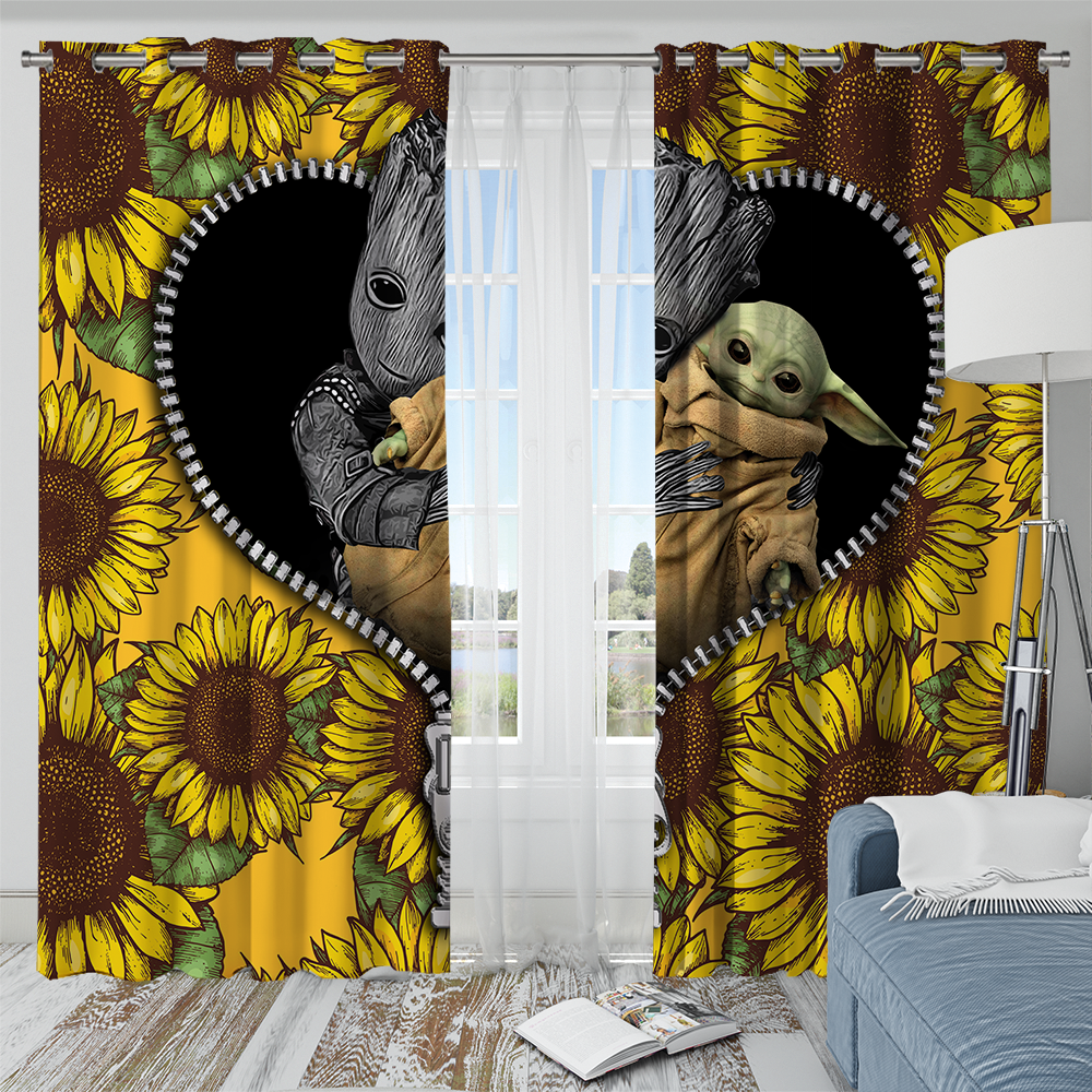 Baby Groot And Baby Yoda Sunflower Zipper Window Curtain