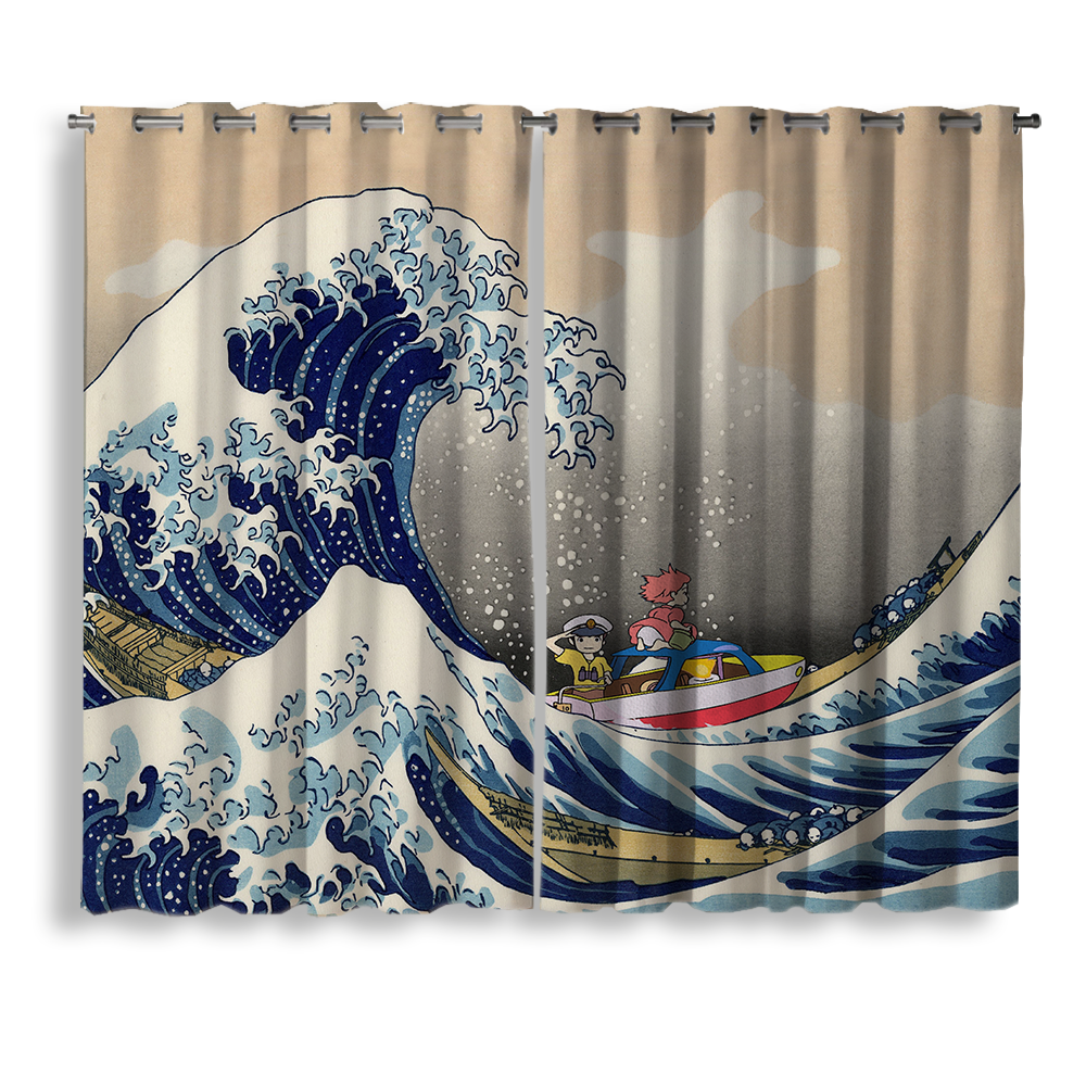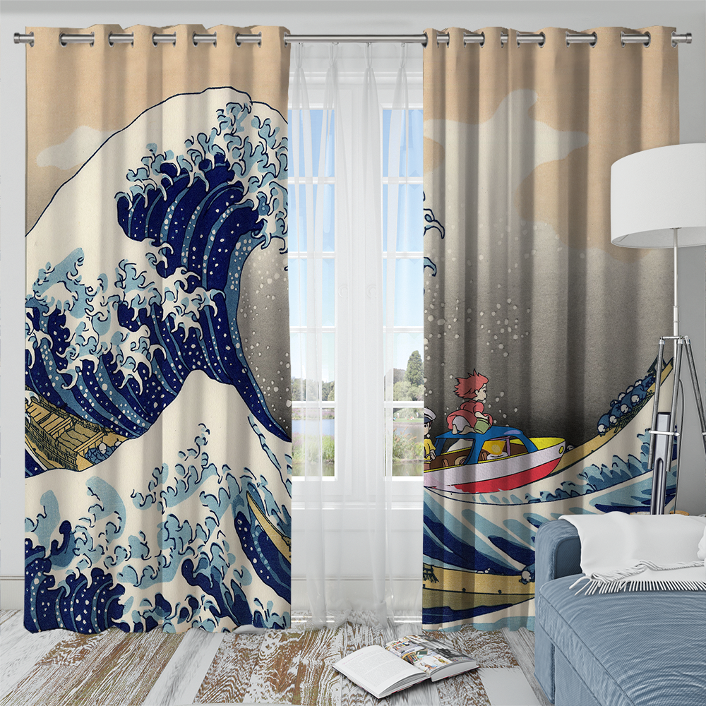 Ponyo On The Cliff By The Sea The Great Wave Ghibli Japan Window Curtain