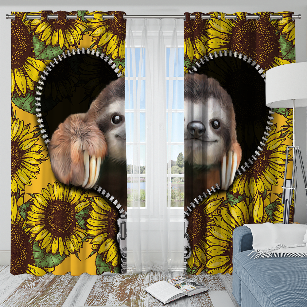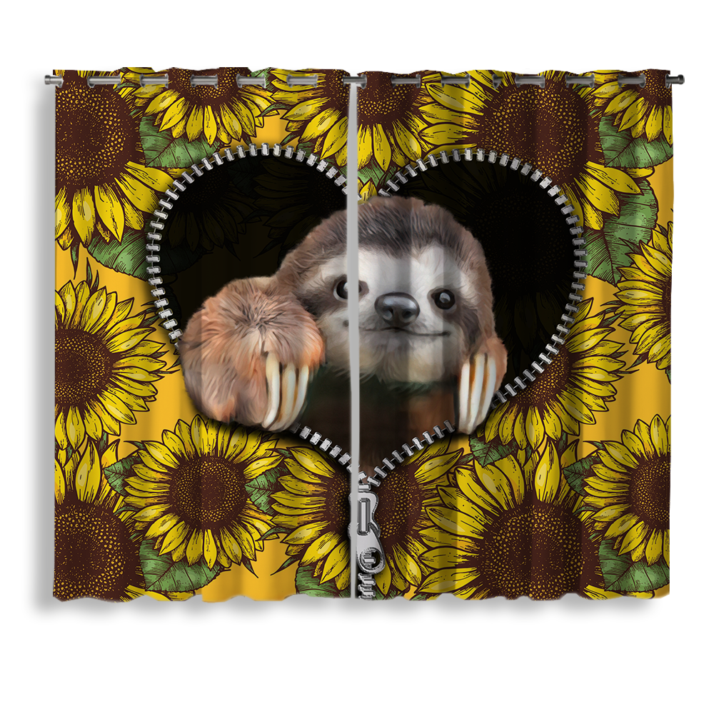 Sloth Cute Sunflower Zipper Window Curtain