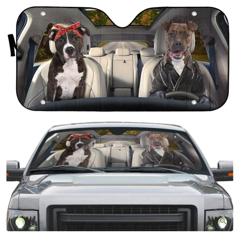 American Staffordshire Terrier Couple Dog Custom Car Auto Sun Shades Windshield Accessories Decor Gift